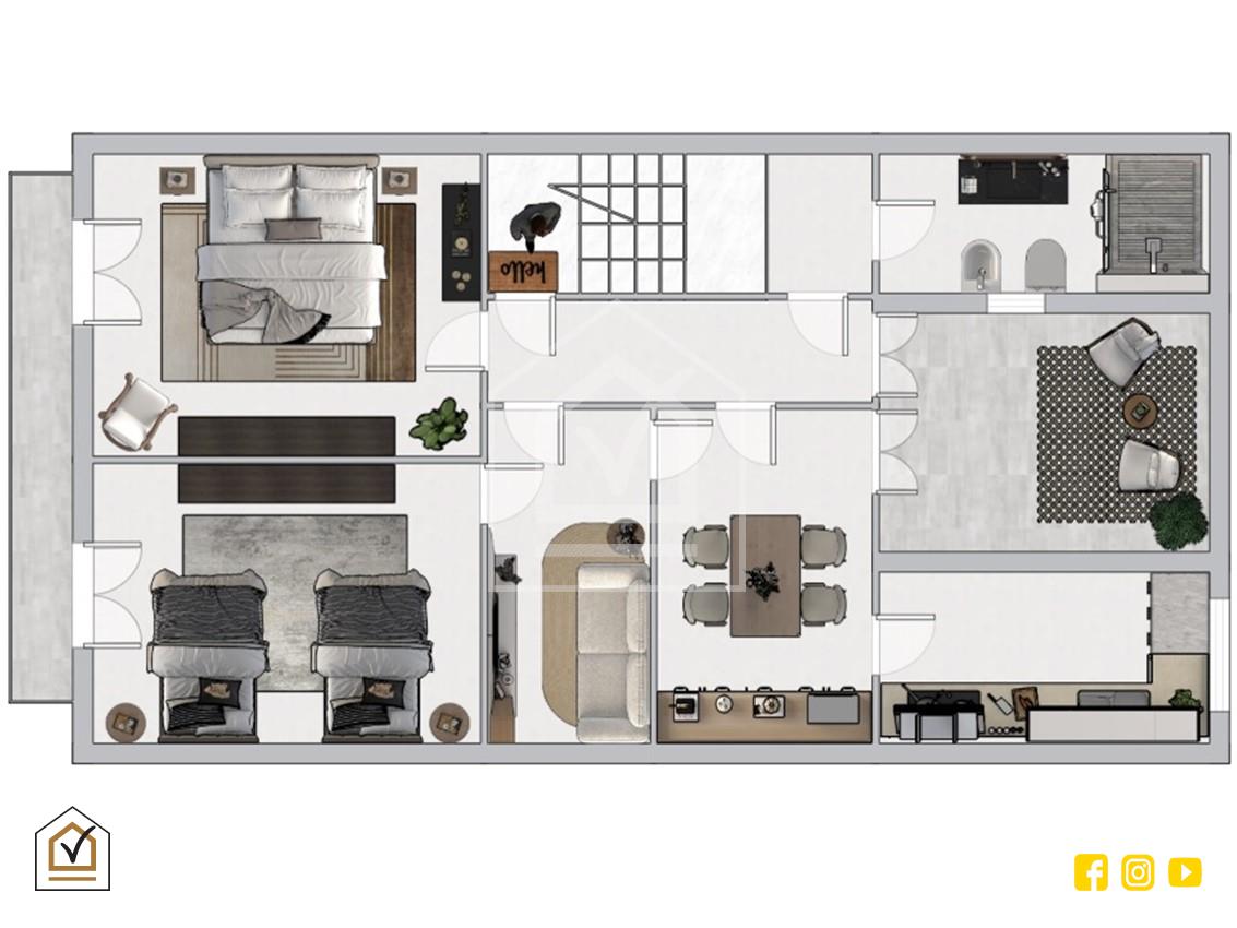 L'immobile vanta una distribuzione degli spazi estremamente funzionale, studiata per massimizzare il comfort e l'esposizione esterna. La zona giorno si compone di un ingresso che conduce a una cucina abitabile e a una sala da pranzo separata: entrambi questi ambienti godono di un accesso diretto al terrazzo a livello di proprietà. Quest'area esterna con affaccio interno rappresenta una vera oasi di riservatezza, perfetta per pranzi all'aperto, per creare un giardino d'inverno o un angolo relax protetto dal fermento del corso. Il bagno padronale e un ampio soggiorno completano gli ambienti principali della casa.