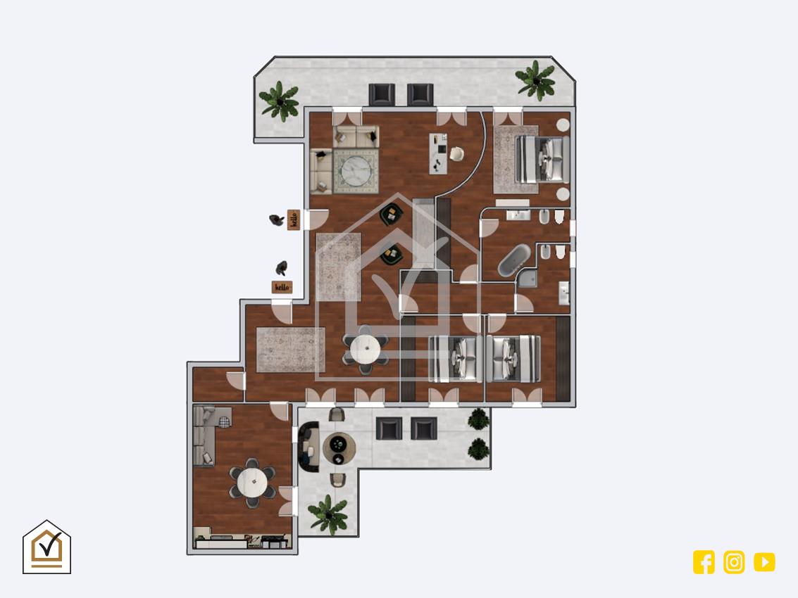 Con una superficie interna di circa 180 mq, l’appartamento offre ambienti ampi, ariosi e facilmente personalizzabili: