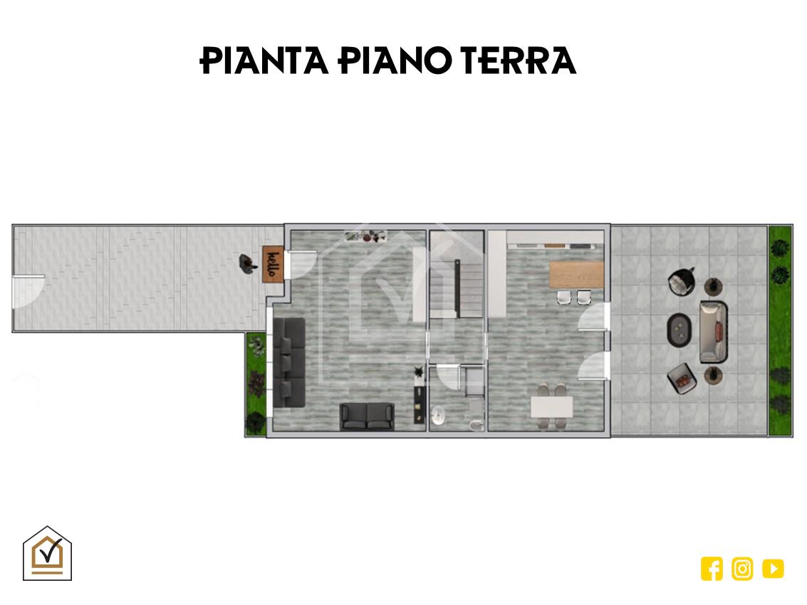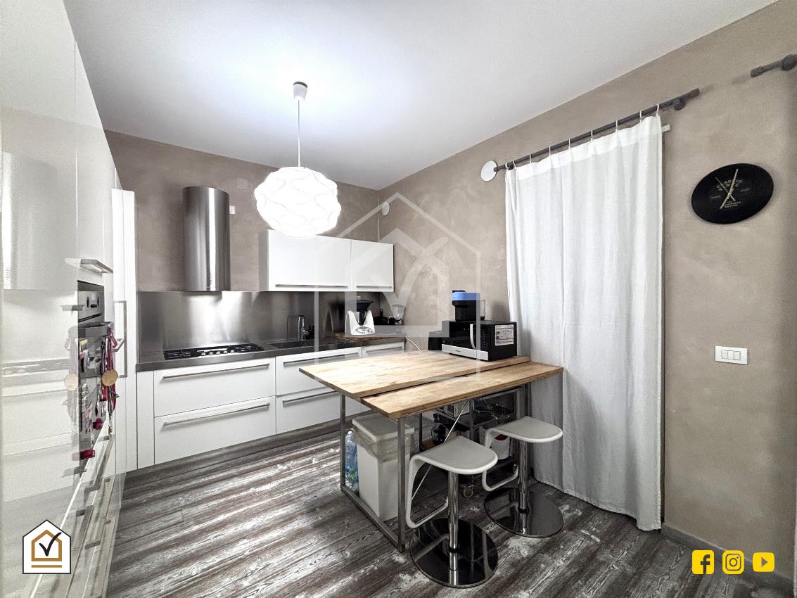 La cucina abitabile, ampia e perfettamente organizzata, è dotata di penisola e zona pranzo, configurandosi come un ambiente conviviale e funzionale, ideale per la vita quotidiana e per accogliere ospiti. Da qui si accede al cortile interno, uno spazio riservato e accogliente perfetto per vivere momenti di relax all’aperto. Completa il piano un bagno con box doccia e sanitari sospesi.