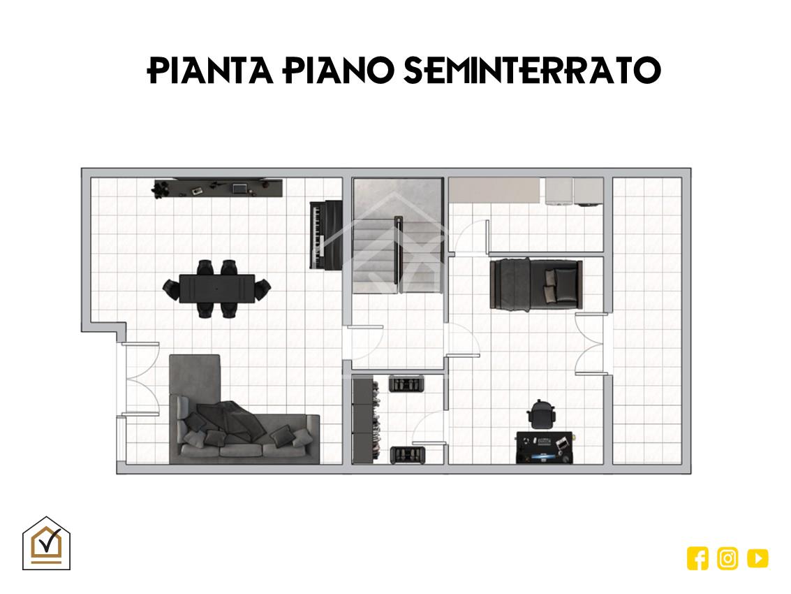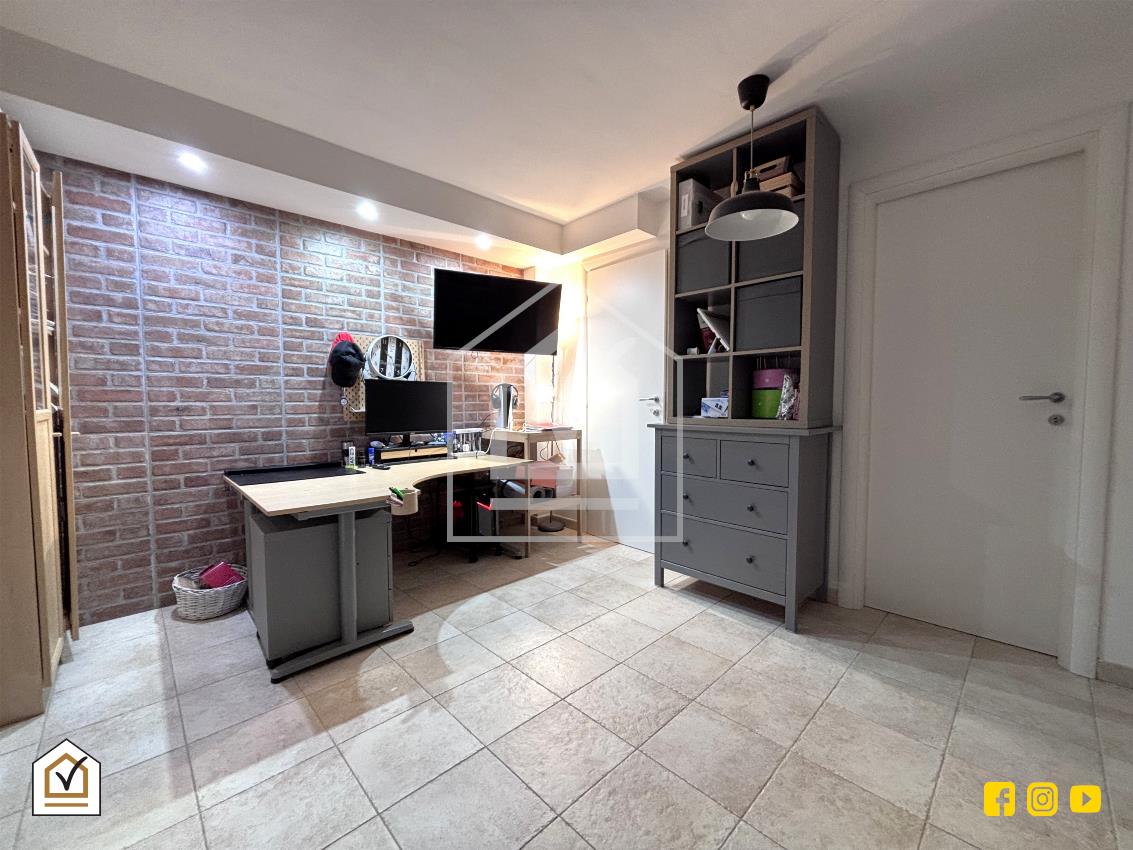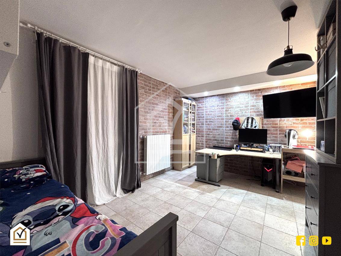 La tavernetta completa la proprietà e si configura come uno spazio versatile e indipendente, accessibile sia dall’interno che tramite ingresso separato con doppia vetrata. L'organizzazione degli ambienti la rende ideale come area living, spazio per ospiti o zona ricreativa, completa di cameretta, cabina armadio e zona lavanderia.