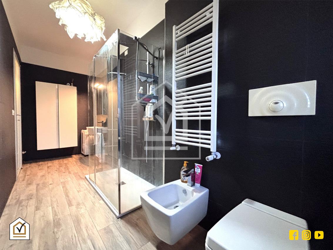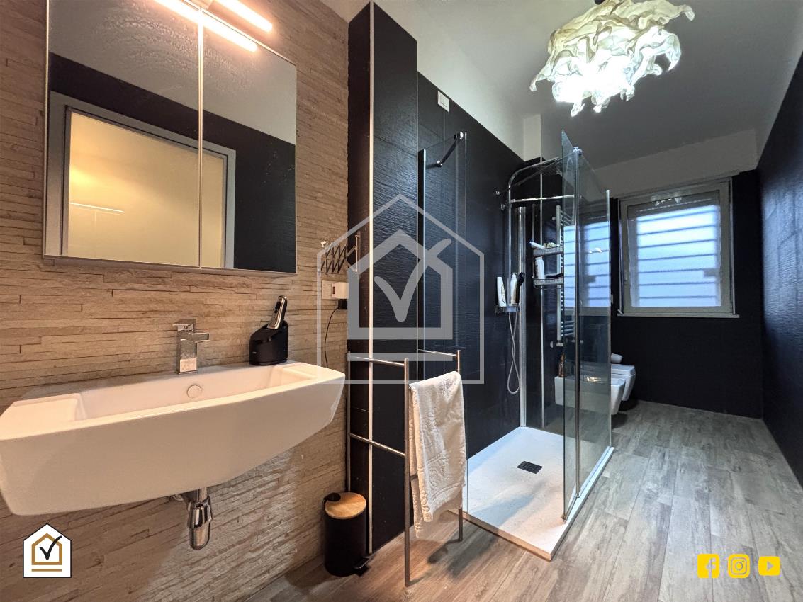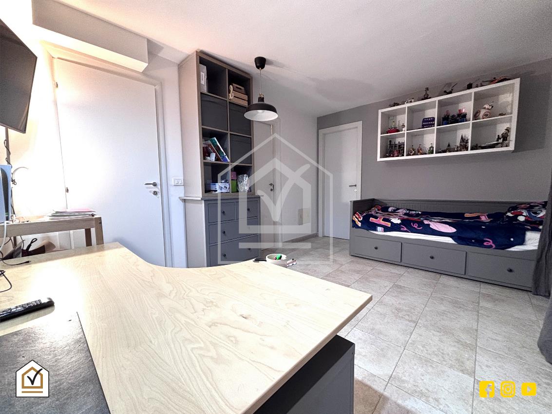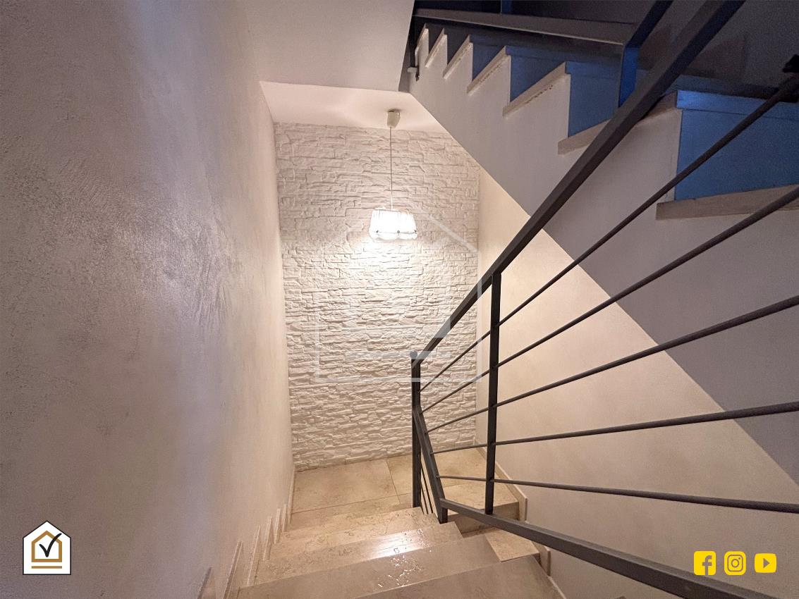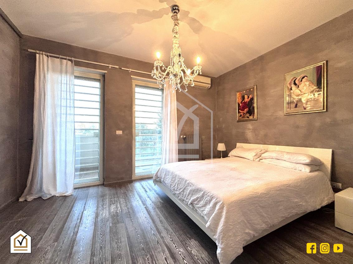Attraverso una comoda scala interna si raggiunge la zona notte, caratterizzata da un’ottima luminosità grazie alla doppia esposizione e alla presenza di due balconi. La camera matrimoniale, ampia e raffinata, è arricchita da una spaziosa cabina armadio, ideale per garantire comfort e organizzazione. Il piano ospita inoltre una cameretta e un ampio bagno padronale, rivestito in pietra vulcanica e dotato di una moderna doccia walk-in, con pavimentazione in gres effetto legno che coniuga estetica e praticità.