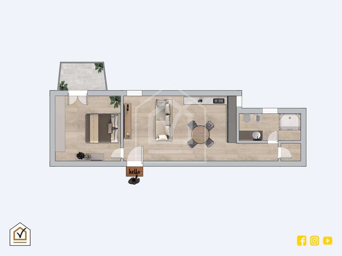 L’immobile gode di luminosità naturale, caratteristica che contribuisce a rendere gli ambienti particolarmente accoglienti e piacevoli da vivere durante tutto l’arco della giornata. Inserito in uno stabile in buone condizioni, nel pieno di una zona centralissima, offre il vantaggio di abitare in un contesto dinamico senza rinunciare alla tranquillità domestica. Dal punto di vista distributivo, una prima ipotesi progettuale prevede un’organizzazione degli spazi razionale e moderna, con una cucina collocata all’ingresso, una camera da letto ben proporzionata e un bagno. Tuttavia, la metratura e la configurazione permettono diverse soluzioni personalizzabili, offrendo così la possibilità di modellare gli ambienti secondo il proprio gusto e le proprie necessità abitative.