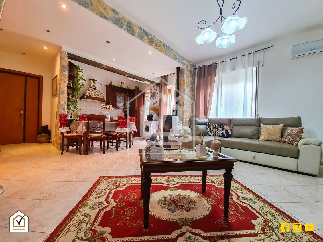 Varcando la porta d'ingresso veniamo accolti nella zona living, ampia e luminosa. La presenza dei dettagli in scorza di pietra di Trani creano un contrasto tra rustico e moderno, che rende l'immobile adattabile a qualsiasi tipo di arredamento.