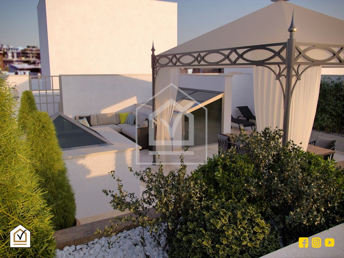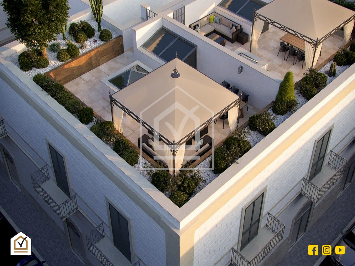 Trattasi di due eleganti e prestigiosi appartamenti entrambi ubicati al primo piano e dotati di terrazzo di esclusiva proprietà di 130 mq ca. con giardino pensile, il fiore all'occhiello di questa fantastica proprietà, personalizzabile con gazebi e piante ornamentali, adatti da vivere nei pomeriggi d'estate e per cene all'aperto.