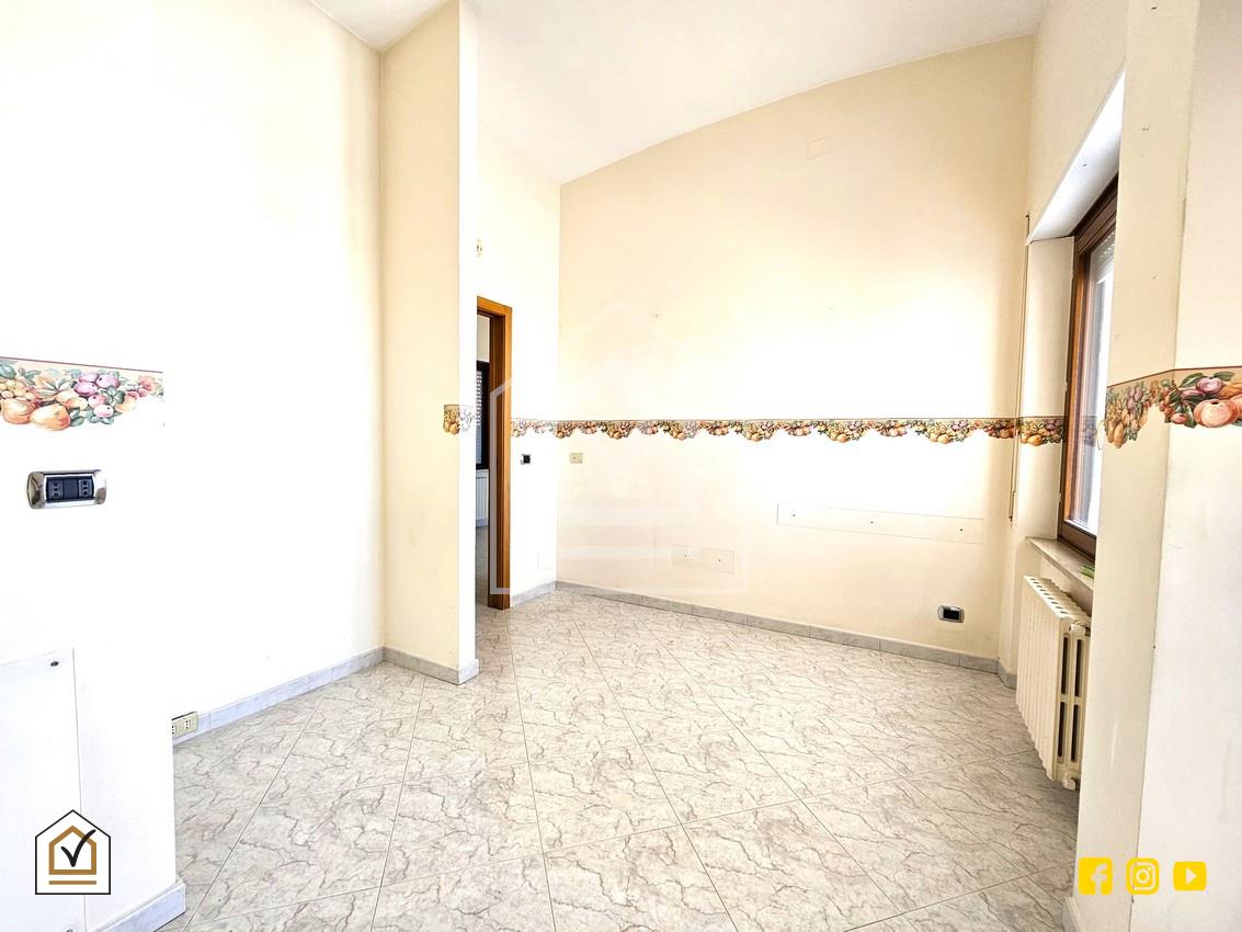Inoltre è posta all'ingresso una scala a chiocciola in legno che ci conduce alla zona living composta dalla zona soggiorno e dalla cucina, dove con poche modifiche è possibile ricreare un comodo ed accogliente open space con accesso diretto al terrazzo. E' presente in quest'area anche un moderno bagno ristrutturato nel 2022 con sanitari a pavimento e box doccia rivestito in gress effetto marmo.