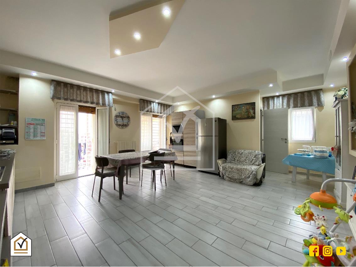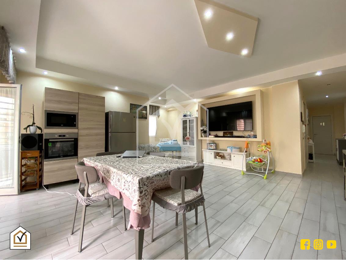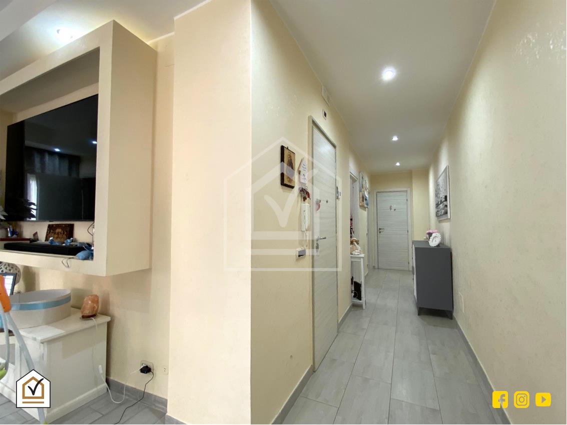 Internamente si presenta con ingresso in un breve disimpegno con accesso diretto nell'ampia e luminosa zona living a vista munita di angolo cottura e due porte finestre, quali affacciano esternamente su via Tommaso Porcelli.