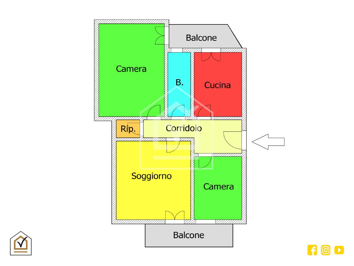L'appartamento ci accoglie con disimpegno, il quale ci conduce nella prima camera da letto e successivamente al soggiorno, entrambe le stanze con affaccio su Via Zanardelli. Proseguendo troviamo un comodo ripostiglio, il bagno, una seconda camera da letto e la cucina, dalle quali stanze abbiamo accesso all'ampio balcone interno.