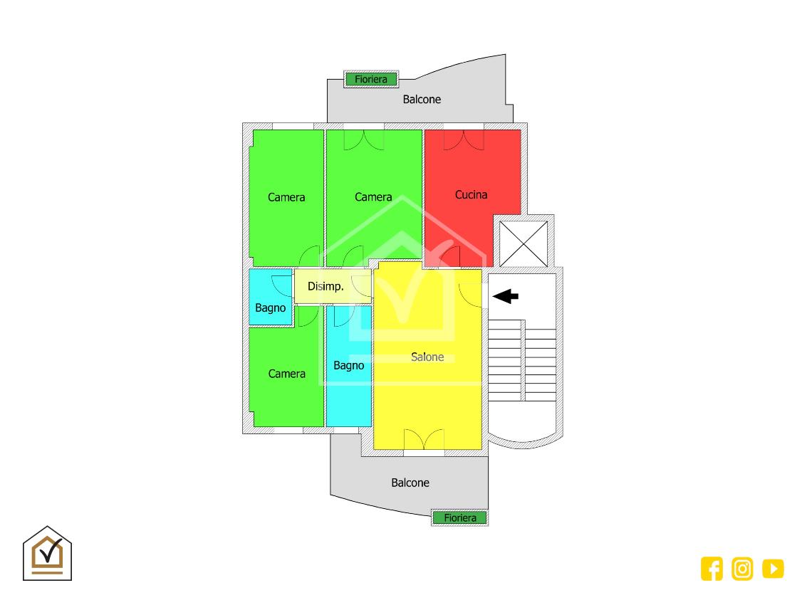 La proprietà è situata al 7° piano in stabile di recente costruzione e provvisto di ascensore. L'appartamento si sviluppa come descritto: al nostro ingresso abbiamo sulla sinistra la luminosa zona giorno e sulla destra la comoda cucina abitabile; entrambi gli ambienti presentano accesso ai 2 rispettivi balconi. Di seguito, passiamo alla zona notte mediante disimpegno, questa composta dalle 3 camere da letto, il bagno padronale finestrato completo di vasca da bagno ed il doppio servizio con box doccia.