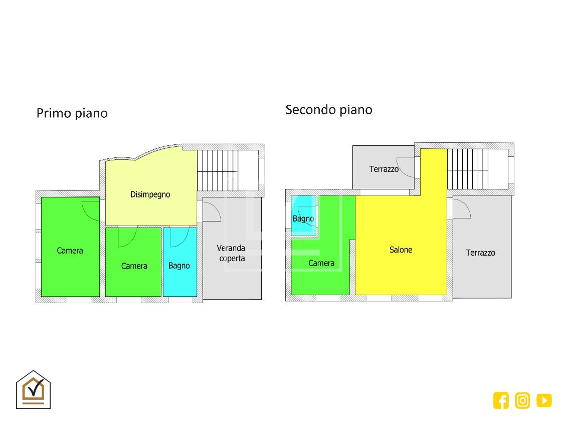 Il PIANO TERRA è costituito dalla luminosa zona giorno in cui troviamo l'accogliente salone con accesso attraverso due ingressi a due comodissime verande coperte che permettono di godersi l'area verde anche nelle giornate più fredde; bagno finestrato; cucina abitabile ed un'ulteriore camera utilizzabile come studio o camera da letto.