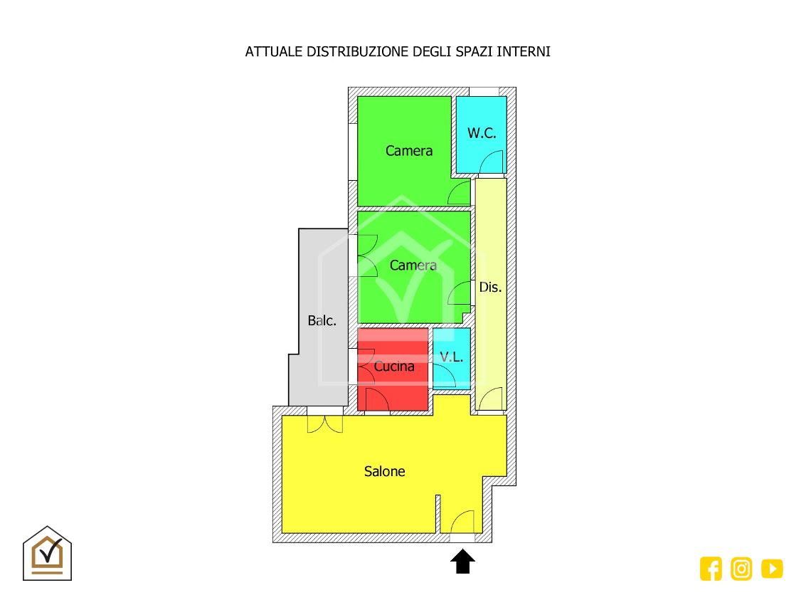 Proseguendo il disimpegno si giunge alla zona notte composta dalla camera matrimoniale, camera da letto e bagno. Attualmente riversa in buono stato ma grazie alla sua pianta regolare è possibile, apportando alcune modifiche, ricreare un moderno open space!