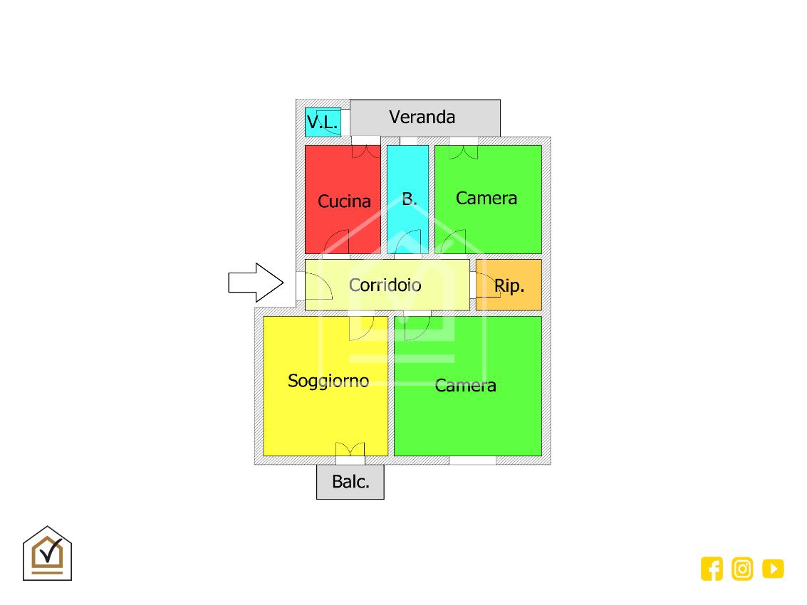 L'appartamento presenta un'ottima disposizione interna, al nostro ingresso troviamo una luminosa zona giorno composta da cucina e soggiorno, proseguendo troviamo il bagno, le due accoglienti camere da letto ed un comodissimo ripostiglio. Tutti gli ambienti sono illuminati in maniera naturale con affaccio sulla veranda condonata e sul balcone lato strada.
