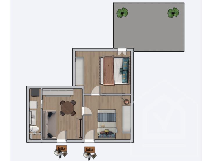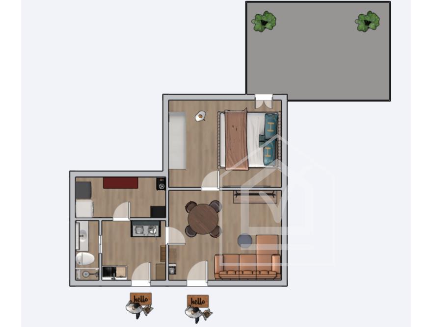 L'attuale conformazione planimetrica, non presentando murature portanti, permette una ridistribuzione degli spazi in base alle proprie esigenze, ad esempio sarebbe possibile suddividere zona giorno, realizzando un ambiente unico, dalla zona notte ricavando un'ulteriore camera da letto (vedi planimetria variante).