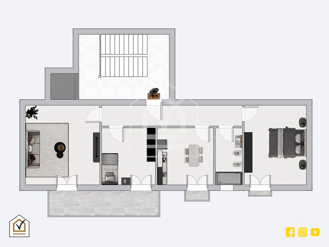 Internamente, la soluzione è suddivisa con l'accogliente ingresso nel corridoio che conduce sulla destra alla camera da letto e ampio salone, entrambe dotate di porte finestre che condurranno al balcone con esposizione esterna. Sulla sinistra, invece, troveremo cucina abitabile e camera da letto matrimoniale dotate di balconi "alla romana" con affaccio su Viale Pasteur e bagno finestrato.