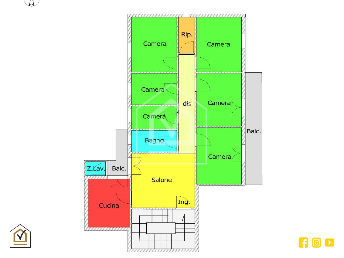 Si tratta di un appartamento ideale per un nucleo familiare numeroso! L'abitazione presenta sei camere da letto, due balconi di cui uno interno con una zona cucina abitabile e luminosa.