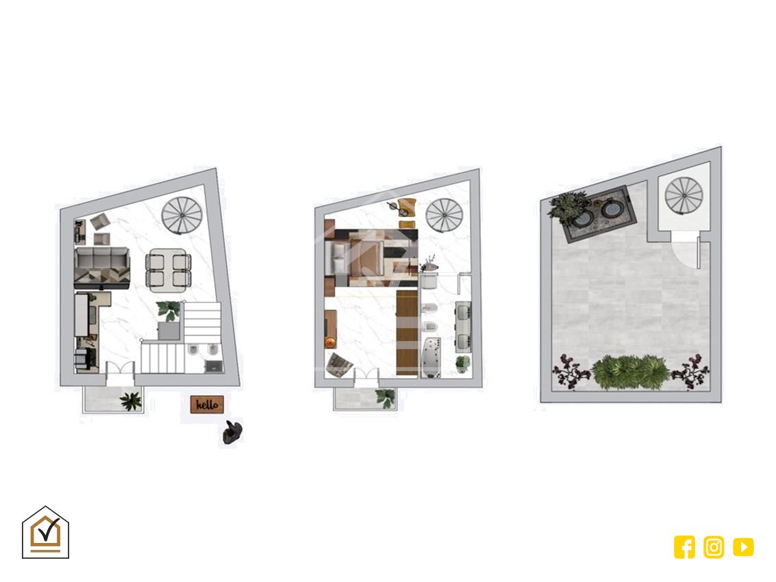 Al primo piano troviamo un accogliente open space che combina la cucina e il soggiorno, arricchito da un caminetto che crea un'atmosfera calda e accogliente. Al secondo piano, la camera da letto è caratterizzata da un elegante pavimento in parquet, insieme a un bagno ben rifinito, ideale per il comfort quotidiano. Al terzo piano, un terrazzo offre uno spazio all'aperto perfetto per rilassarsi o intrattenere ospiti.Inoltre, l'appartamento dispone di una cantinola di pertinenza, utile per riporre oggetti o come ulteriore spazio di archiviazione.