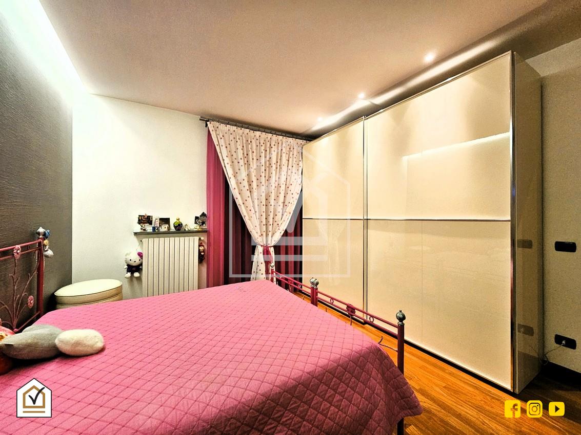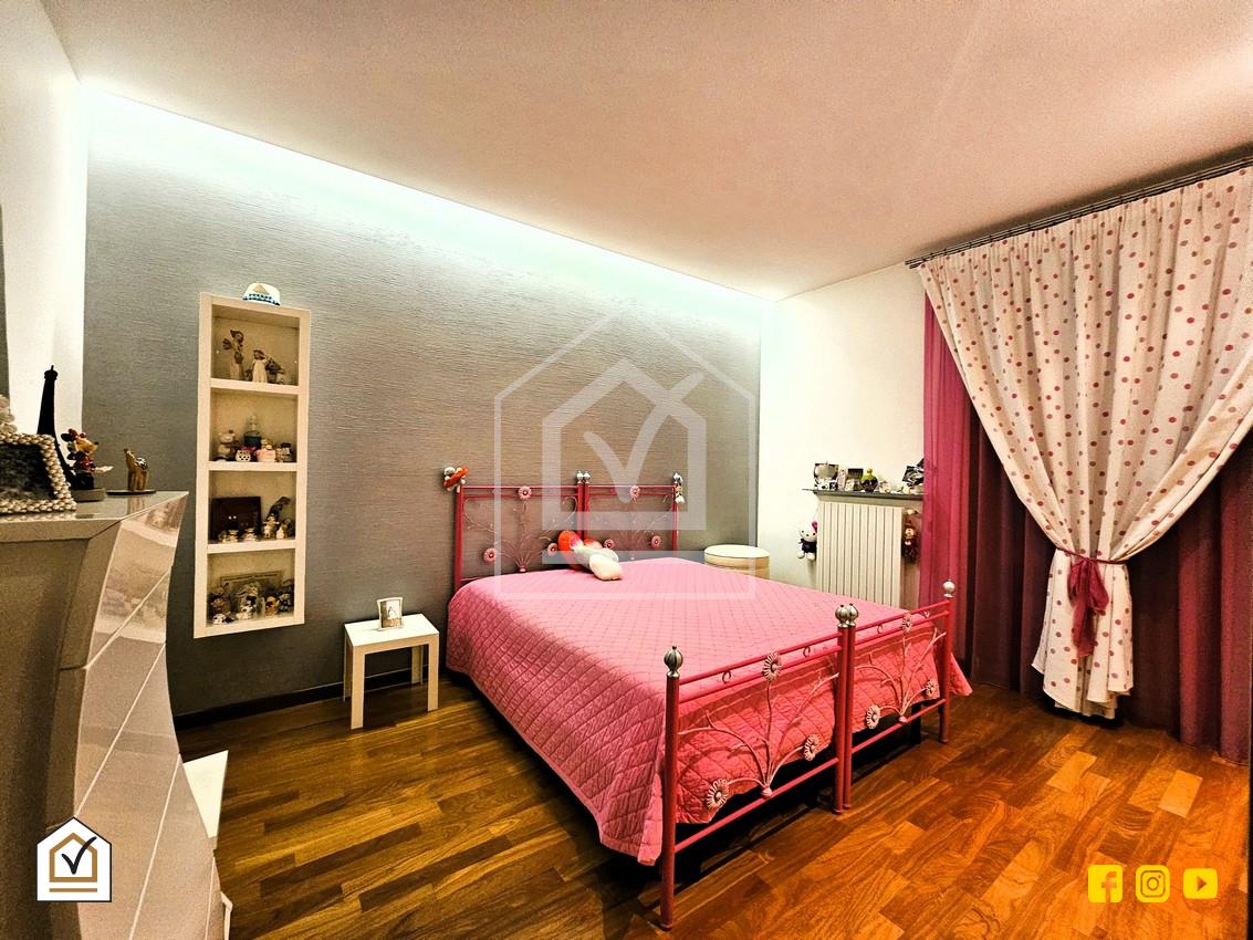 Al primo piano si accede percorrendo un'elegante scalinata rivestita in marmo con un corrimano in ferro; in quest'area si giunge alla zona notte composta dalla camera matrimoniale padronale dotata di utile bagno in camera con box doccia e da altre tre camere da letto. Infine vi è un terzo bagno; quest'ultimo è dotato di una vasca idromassaggio! Dalle camere è possibile accedere ai terrazzi di pertinenza che affacciano sul bellissimo residence.