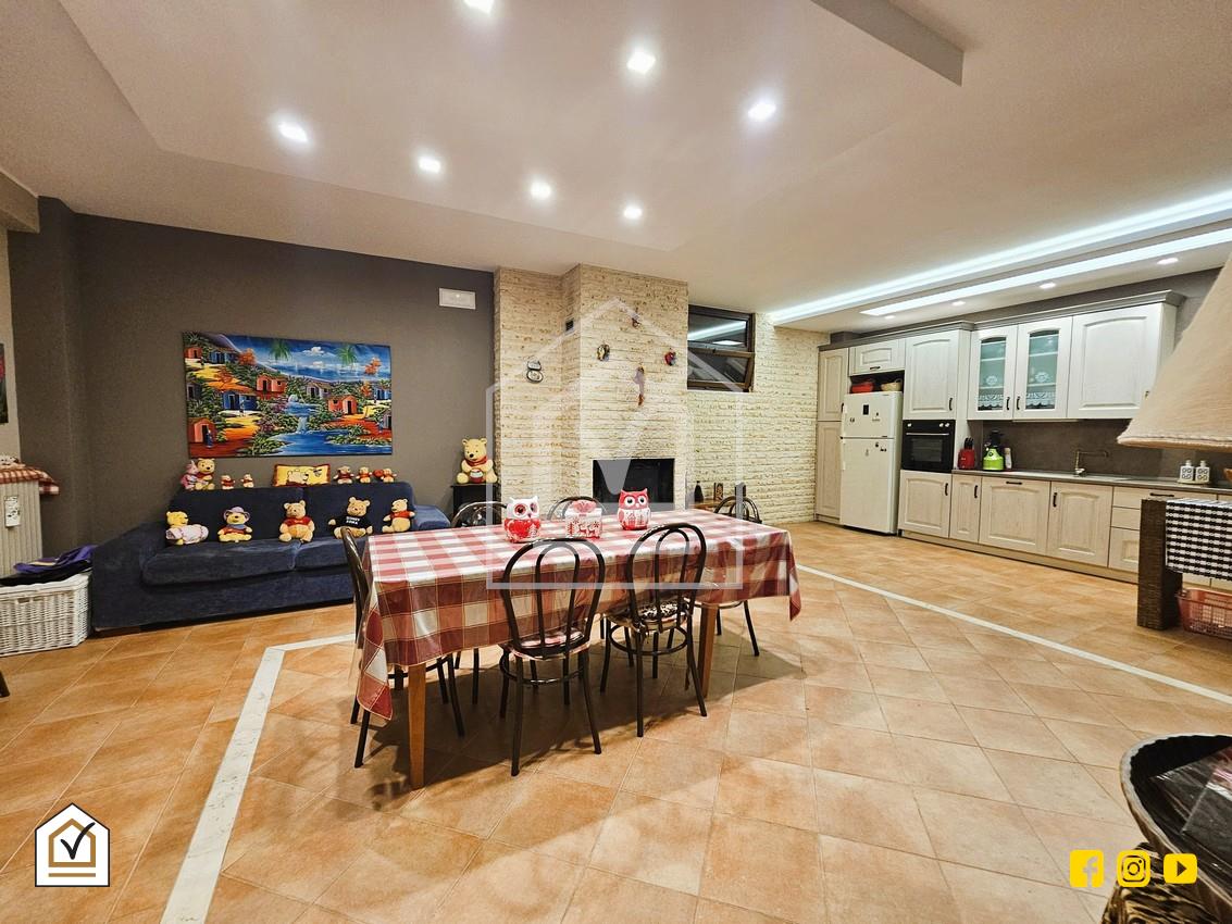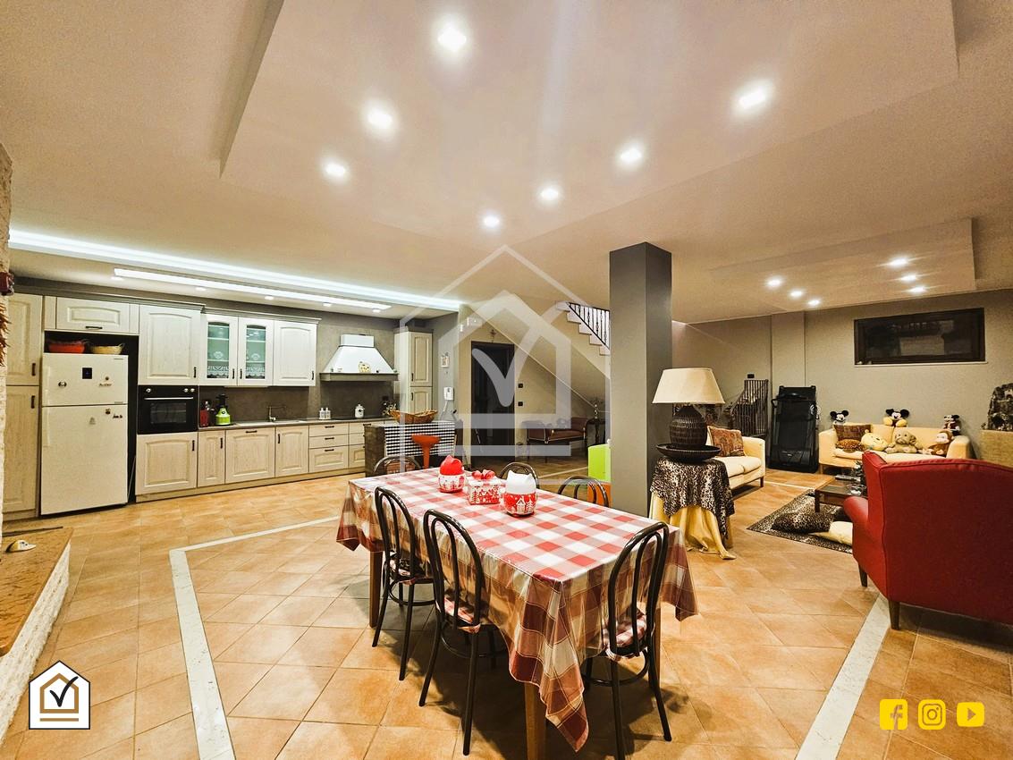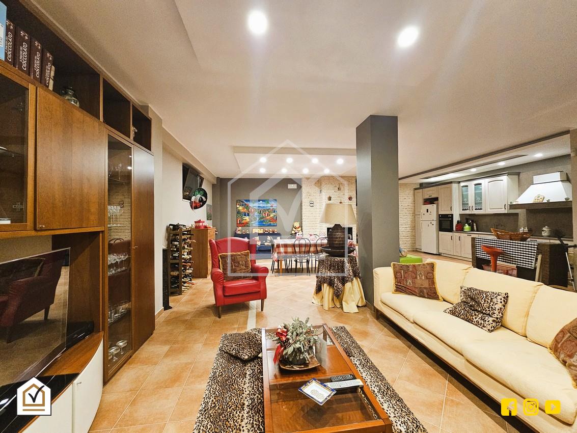 Si sviluppa su una superficie interna di 300 mq ca. Suddivisi in tre livelli; al piano terra, varcando la porta d'ingresso vi è l'ampio salone caratterizzato da una pavimentazione in marmo per tutto l'ambiente cosi da donare lucentezza e omogeneità per tutto il piano; è completo inoltre di un grazioso camino; ottimo spazio per passare momenti di convivialità in compagnia di amici e parenti. Proseguendo, vi è la cucina anch'essa di ampie dimensioni.