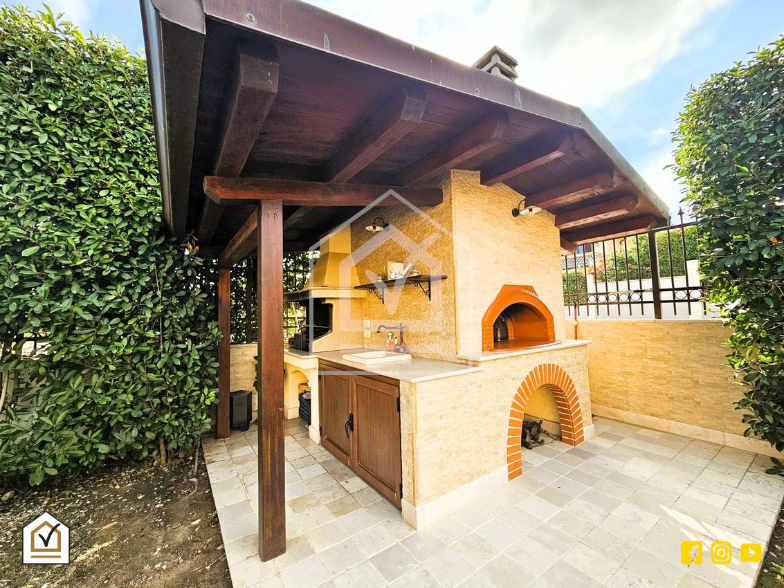 Altro punto focale della villa è il suo giardino di pertinenza che si sviluppa su una superficie di 700 mq ca. Esterni; si hanno sia spazi verdi con alberi ed aiuole ma anche una parte pavimentata che viene utilizzata per pranzare all'esterno o per concedersi momenti di relax all'aria aperta. Non poteva mancare il grazioso angolo barbecue completo di forno per pizze; adatto a tutti coloro che amano dedicarsi alla cucina all'aria aperta all'insegna di feste e momenti di condivisione ma anche per dare spazio ai propri hobby culinari! Completa di pannelli fotovoltaici.