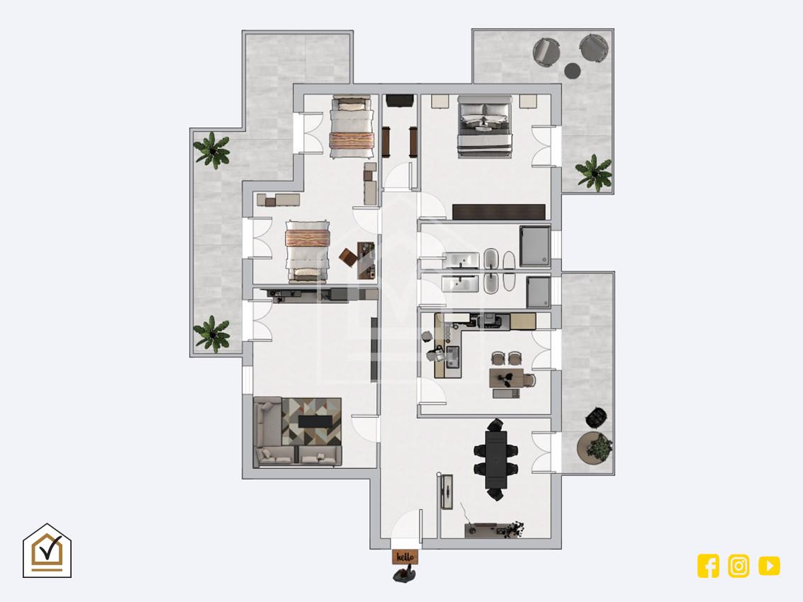 L'appartamento si distingue per la sua luminosità e la cura dei dettagli. L'ingresso conduce a un disimpegno che dà accesso a una spaziosa zona giorno, composta da un ampio soggiorno doppio, ideale per creare aree separate per relax e intrattenimento. Adiacente al soggiorno, la sala da pranzo, dalle dimensioni generose, è perfetta per cene conviviali, mentre l'ampia cucina abitabile offre uno spazio accogliente e funzionale per la preparazione dei pasti e i momenti informali in famiglia.