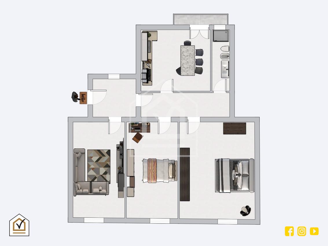 L’immobile dispone di un'ampia zona giorno, composta da una cucina abitabile e un salone, due grandi camere da letto e un bagno. Tutte le stanze sono finestrate, garantendo una buona luminosità, mentre la cucina si affaccia direttamente su un balcone. Completa la proprietà un comodo posto auto, che rappresenta un valore aggiunto alla residenza.