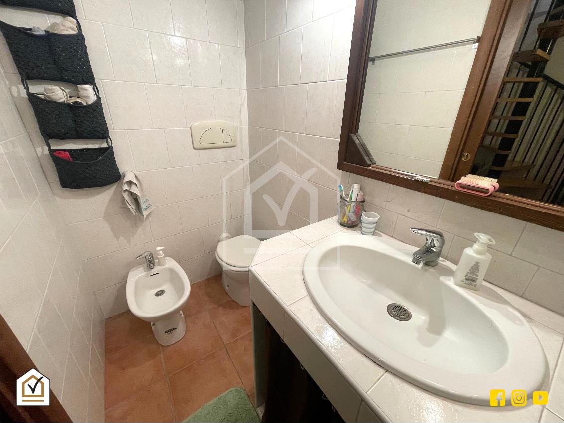 Scendendo al piano inferiore attraverso una rifinita scala Arkè , vi è un comodo disimpegno che conduce alla camera matrimoniale, al secondo bagno munito di piatto docca e comprende anche una nicchia che viene utilizzata come rispostiglio. Tutta la zona è arieggiata grazie alla presenza della porta finestra con esposizione sul giardino condominiale, utilizzata anche come doppio ingresso per accedere all'immobile.