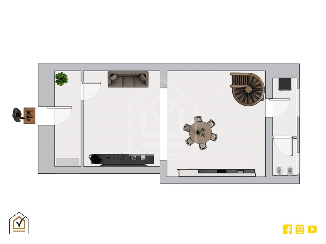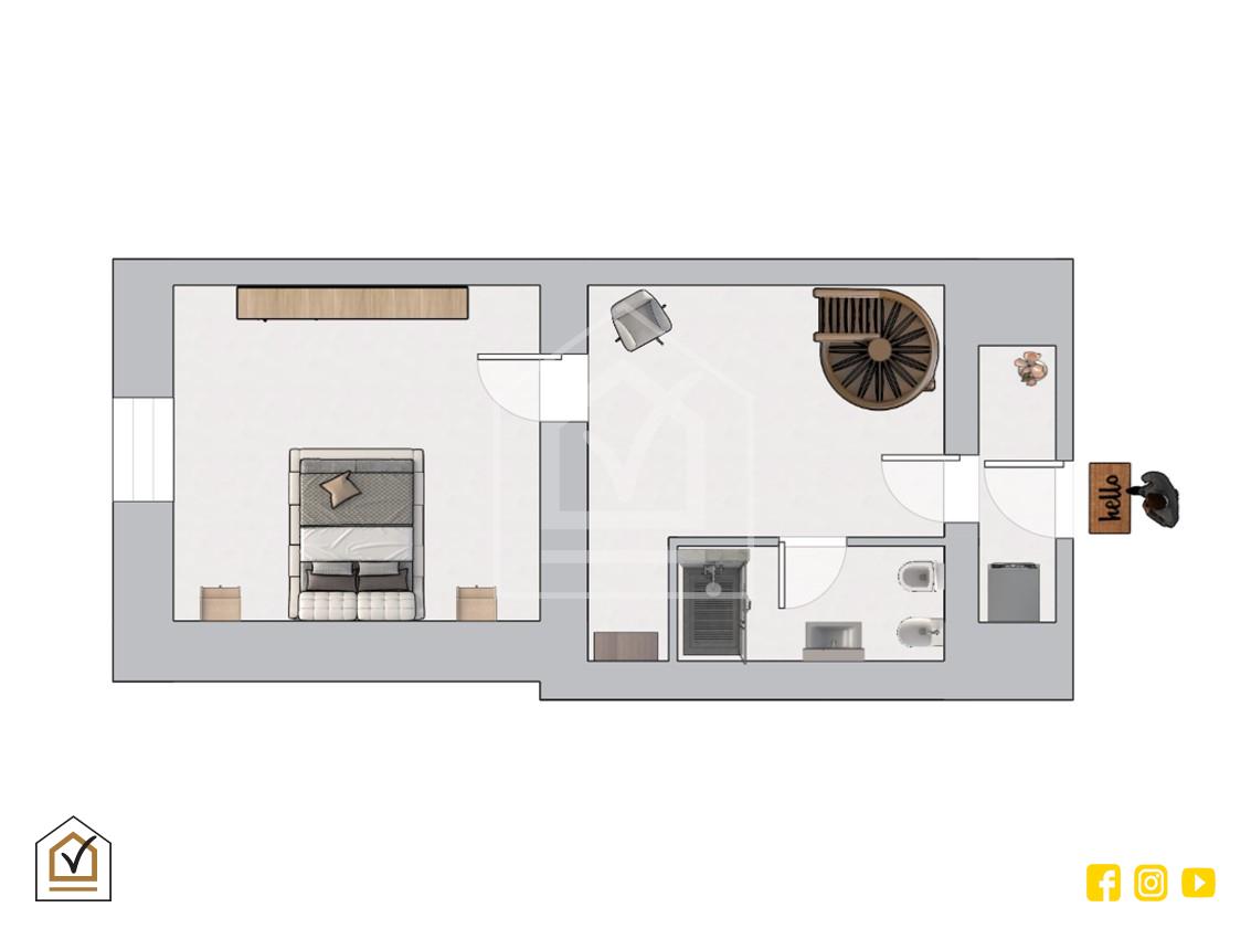 Internamente è così composto: al piano terra vi è una spaziosa zona living che funge da salone accoglienza e sala da pranzo terminando con il cucinino esposto internamamente ed il primo bagno. Questo ampio ambiente offre la possibilità di essere suddiviso in due camere distinte tra loro da utilizzare in base alle prorpie esigenza.