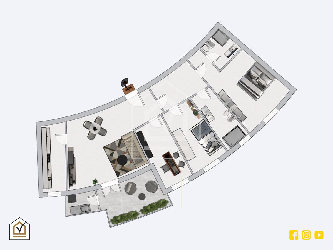 L'immobile, pronto per essere abitato, presenta finiture di alta qualità e spazi ottimamente distribuiti, caratterizzati da funzionalità ed eleganza. All'ingresso ci accoglie un ampio e luminoso salone, dotato di terrazzo a livello con annessa zona lavanderia. Il salone si integra perfettamente con una cucina separata, comunicante tramite una comoda porta scorrevole.