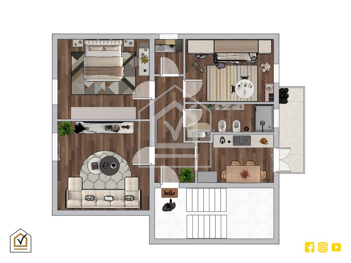 Varcando la porta di ingresso, si apprezza la funzionalità della disposizione planimetrica, che rende l’immobile confortevole e pratico. La zona giorno è composta da una cucina semiabitabile con accesso al balcone e un ampio soggiorno, luminoso e arioso. Proseguendo lungo il disimpegno, si accede alla zona notte, che comprende due ampie camere da letto e un elegante bagno padronale finestrato, dotato di box doccia in cristallo e sanitari sospesi. A completare la proprietà, una comoda zona lavanderia finestrata, ideale per chi desidera un doppio servizio.