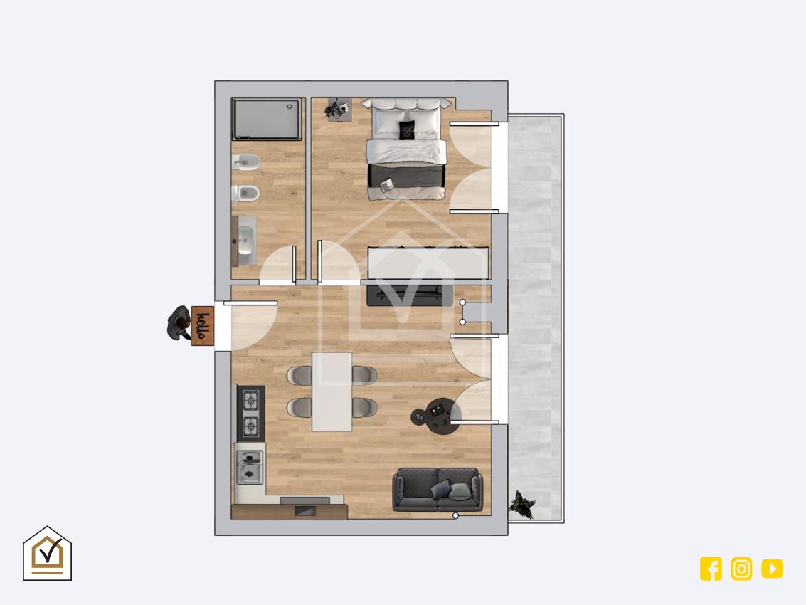 All'interno, l'appartamento si presenta con una disposizione interna moderna e ben studiata. L'ingresso si apre su un luminoso open-space che integra zona living e cucina, creando un ambiente conviviale e accogliente, valorizzato dalla pavimentazione in parquet con ingresso su balcone con affaccio su Piazza Giulio Cesare. La camera da letto è spaziosa e ben illuminata, ideale per il relax, con ampie finestre dotate di tapparelle elettriche coibentate per un comfort ottimale. Il bagno, è arredato con sanitari sospesi dal design contemporaneo, offrendo stile e praticità e ampio box doccia.