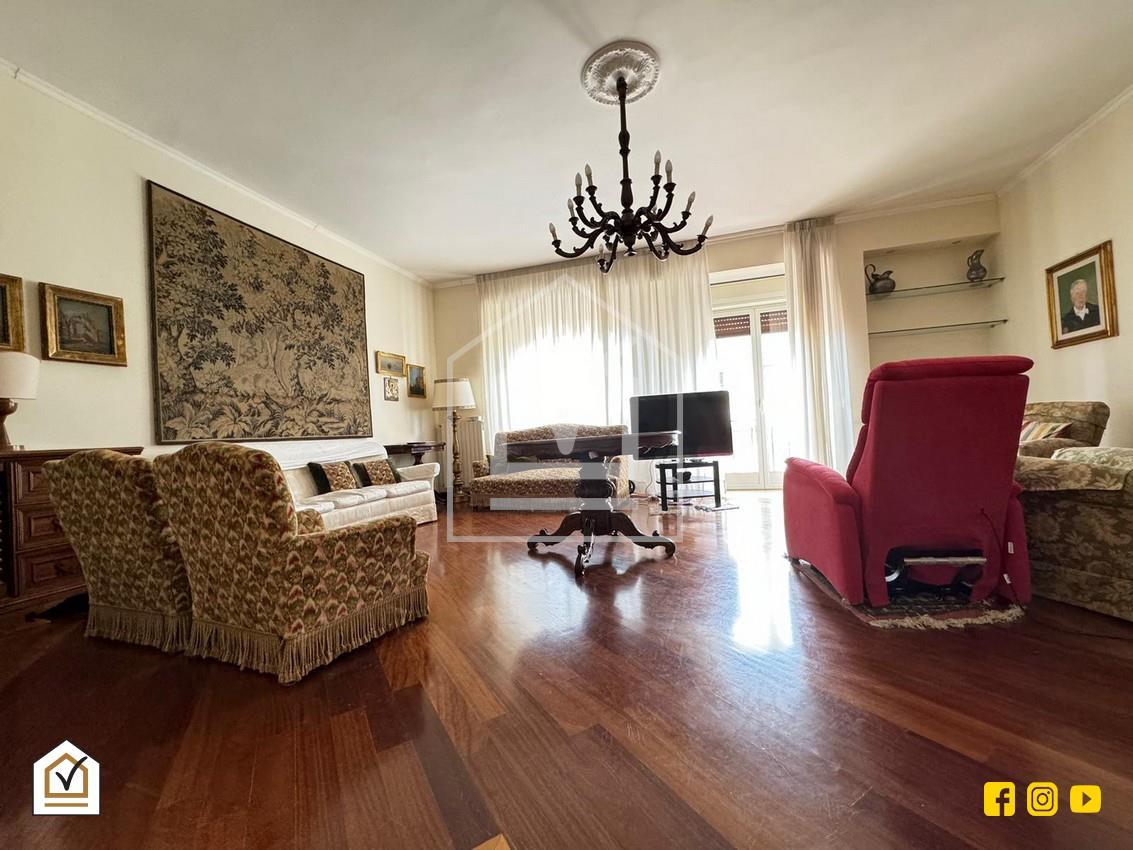 La proprietà è libera sin da subito e riversa in buonissime condizioni interne ed è composta come di seguito: ingresso nel disimpegno che regala privacy ai vari ambienti dell'abitazione, luminoso salone doppio che affaccio su via Murat, cucina abitabile, doppio servizio e tre comode camere da letto.