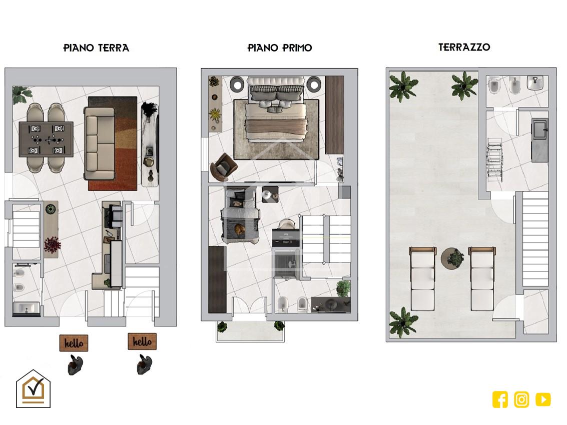 L'immobile si sviluppa su due livelli, per un totale di 80 mq interni ben distribuiti. Al piano terra troviamo la zona giorno, composta da una spaziosa cucina e un ampio soggiorno, che crea un ambiente perfetto per la vita quotidiana e per momenti di convivialità. Completa questo piano un comodo bagno di servizio e un utile ripostiglio, che offre spazio extra per riporre oggetti e ottimizzare gli ambienti.