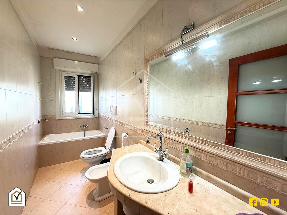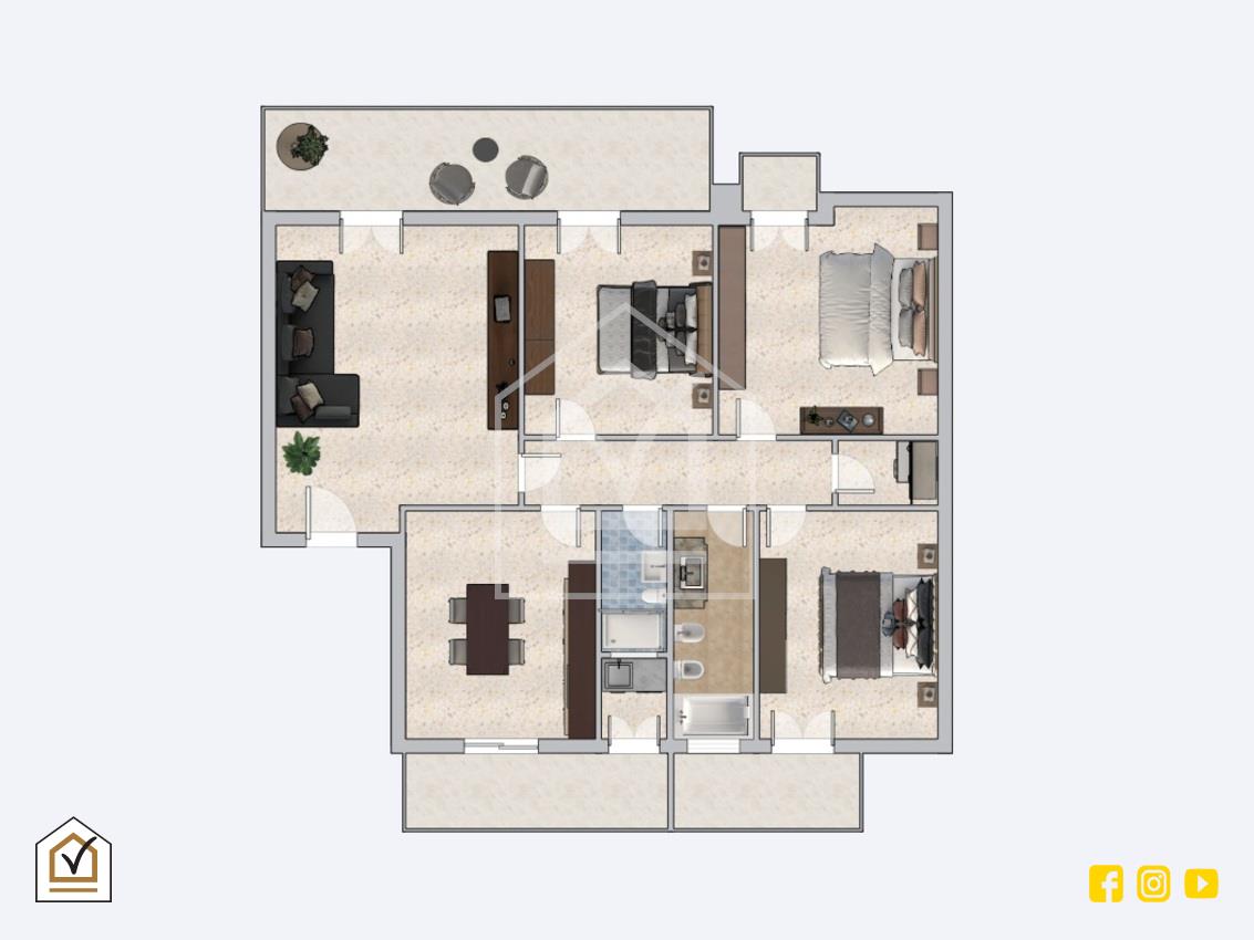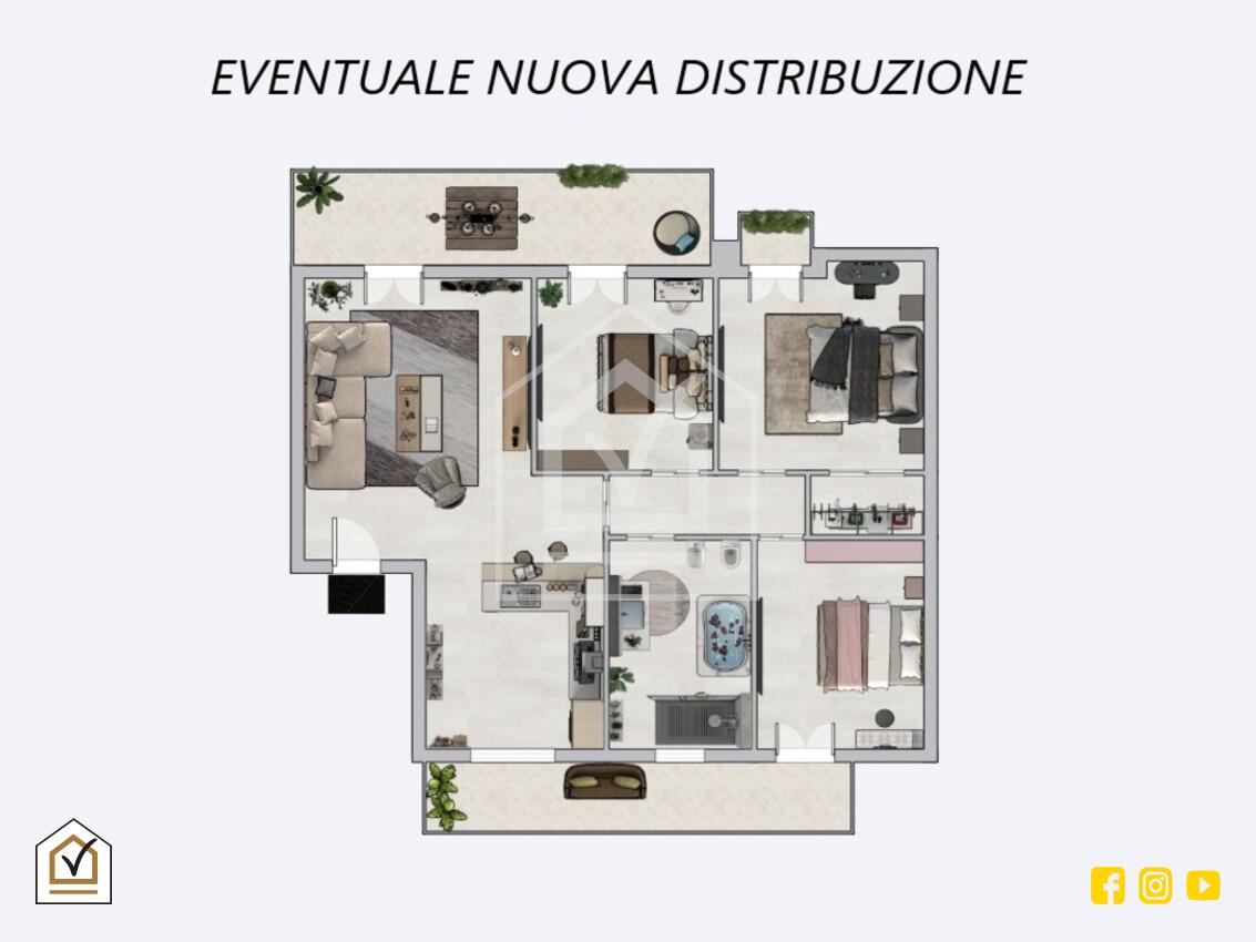 L'abitazione è in buono stato interno ed ha un'ottima distribuzione degli spazi che la compongono, con la presenza del luminoso salone appena varcato l'ingresso, disimpegno da cui si dislocano la cucina con accesso alla veranda dotata di angolo cottura, le 3 camere da letto di generosa metratura, il bagno padronale dotato di vasca da bagno, il doppio servizio con utile box doccia, ed infine il ripostiglio; quest'ultimo, qualora desiderato, può essere convertito in cabina armadio.