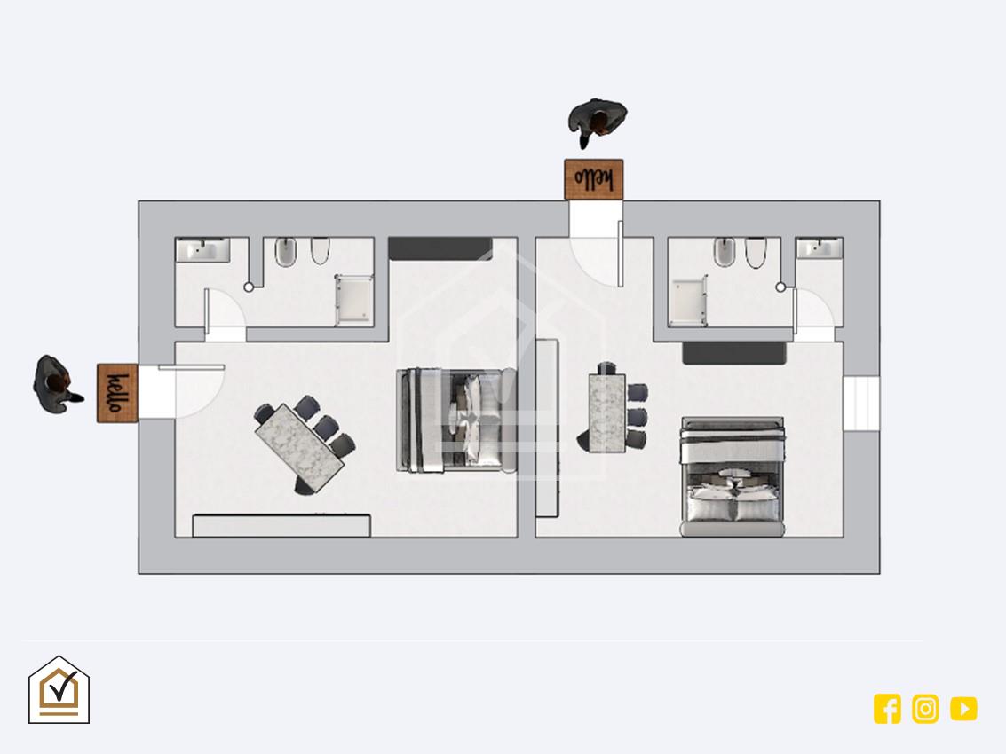 La soluzione è posizionata al piano terra. Ha accesso sia da strada che dall'androne del portone ed è attualmente suddivisa in due comodi monovani con accesso indipendente, entrambi completi di bagno privato e angolo cottura.