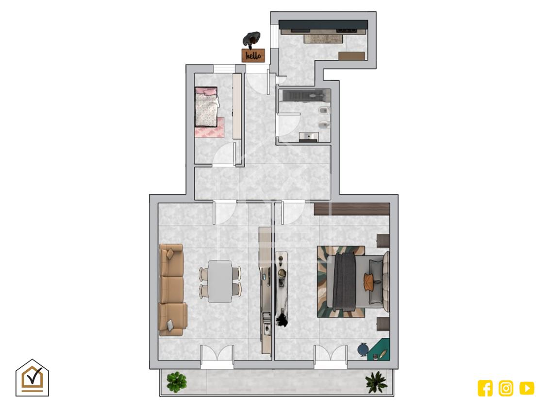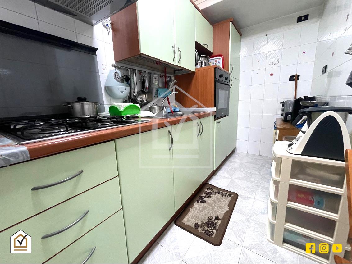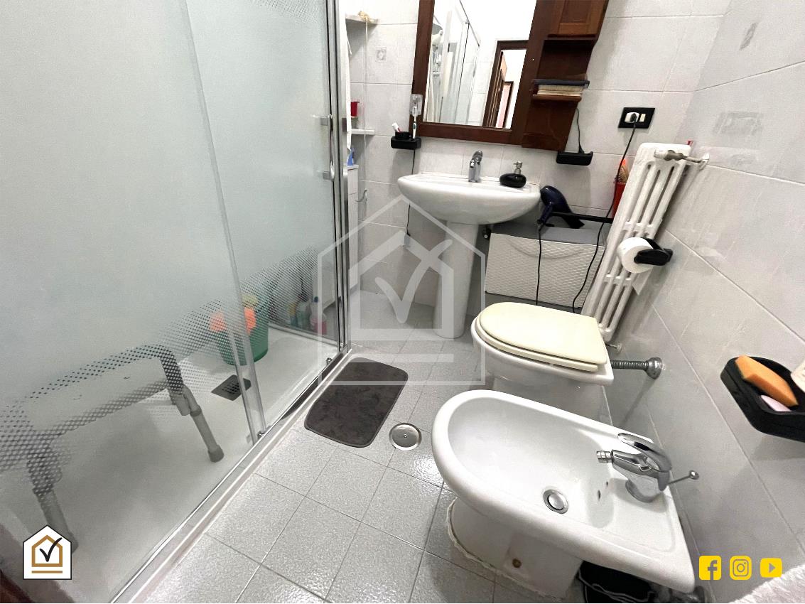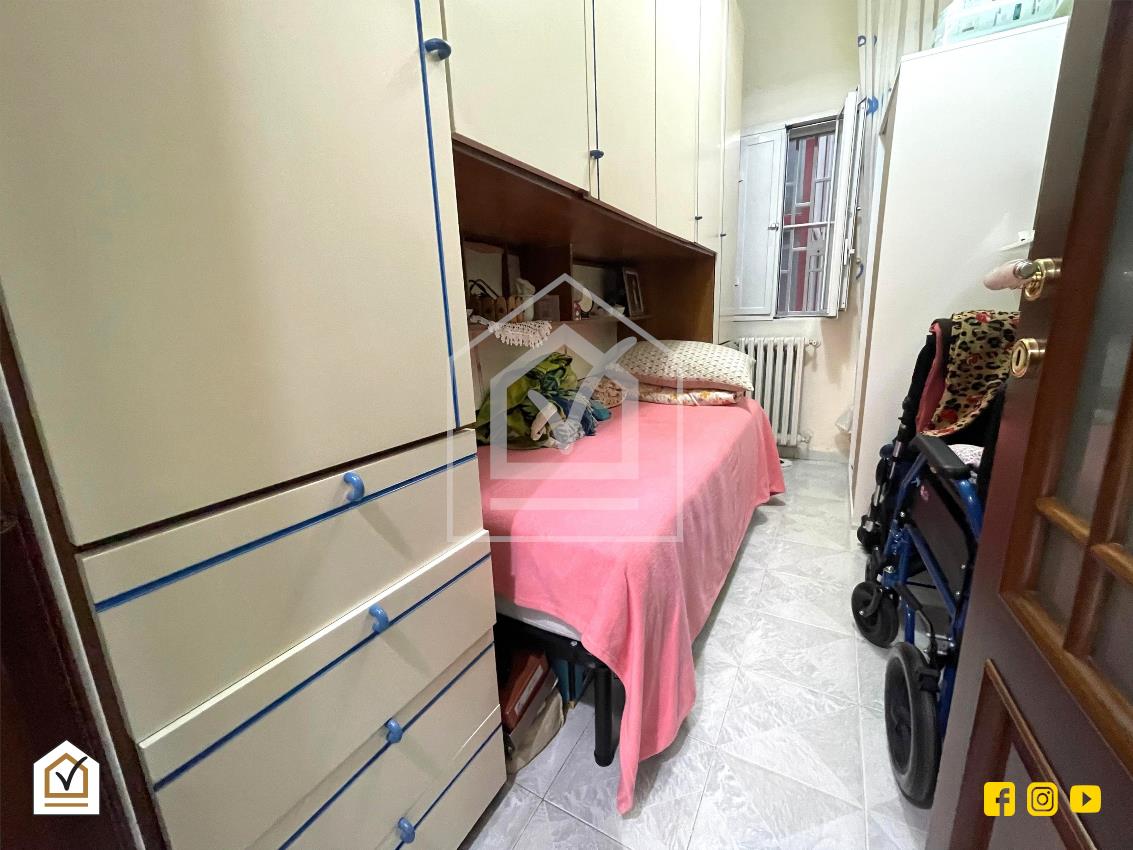Attualmente è disposto con ingresso nel disimpegno, angolo cottura finestrato, due ampie camere utilizzate come salone e camera matrimoniale, ulteriore camera ideale per realizzare una stanzetta e a concludere bagno con box doccia e spazioso rispostiglio.