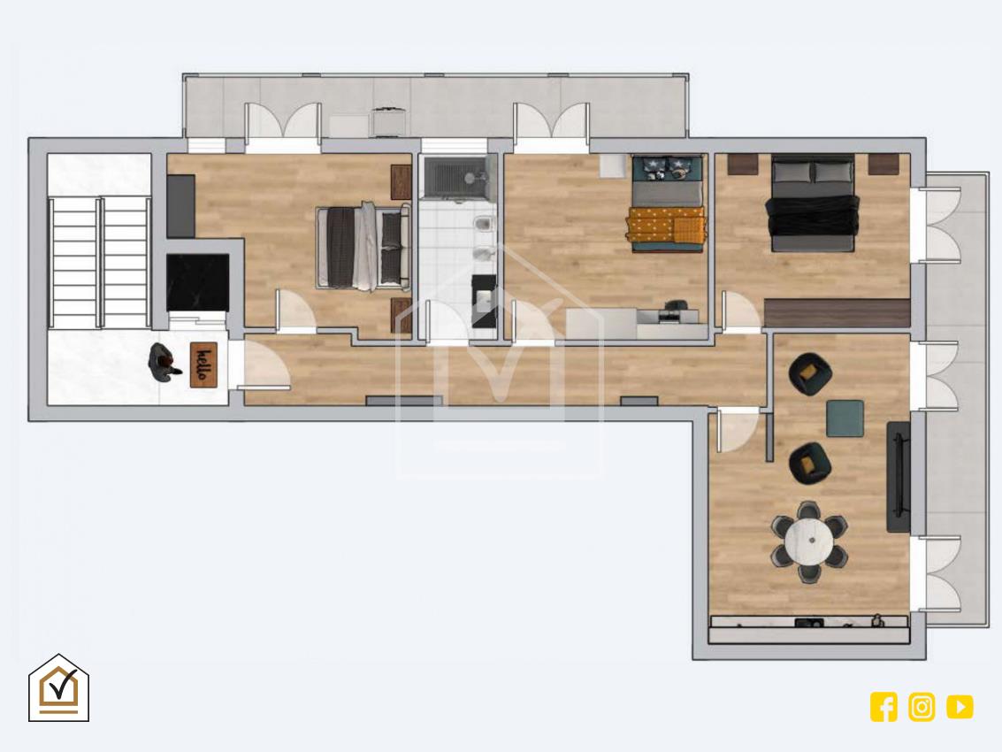 L’appartamento si compone di tre camere da letto, perfette per garantire il massimo comfort per tutta la famiglia. Ogni ambiente è stato pensato per offrire funzionalità e stile, con finiture di alta qualità che ne esaltano l’aspetto moderno e accogliente.