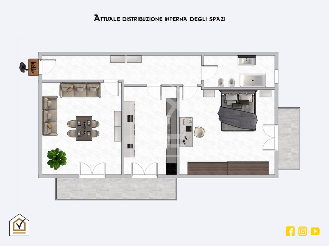 Attualmente riversa in buono stato ma conferma un gusto classico; grazie alla sua pianta regolare è possibile apportare delle migliorie. E' possibile realizzare all'ingresso un comodo e funzionale open space con accesso diretto al balcone, proseguendo il disimpegno si avranno la cameretta e la camera matrimoniale. Completo di bagno finestrato. Completa di utile cantina di pertinenza ad uso esclusivo!