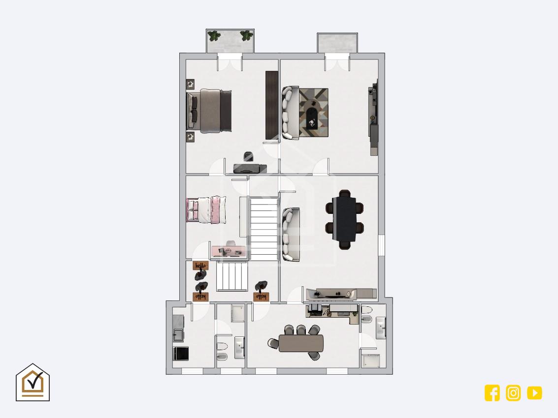 - Triplo ingresso che garantisce totale indipendenza tra zona giorno e zona notte, ideale per famiglie e professionisti.