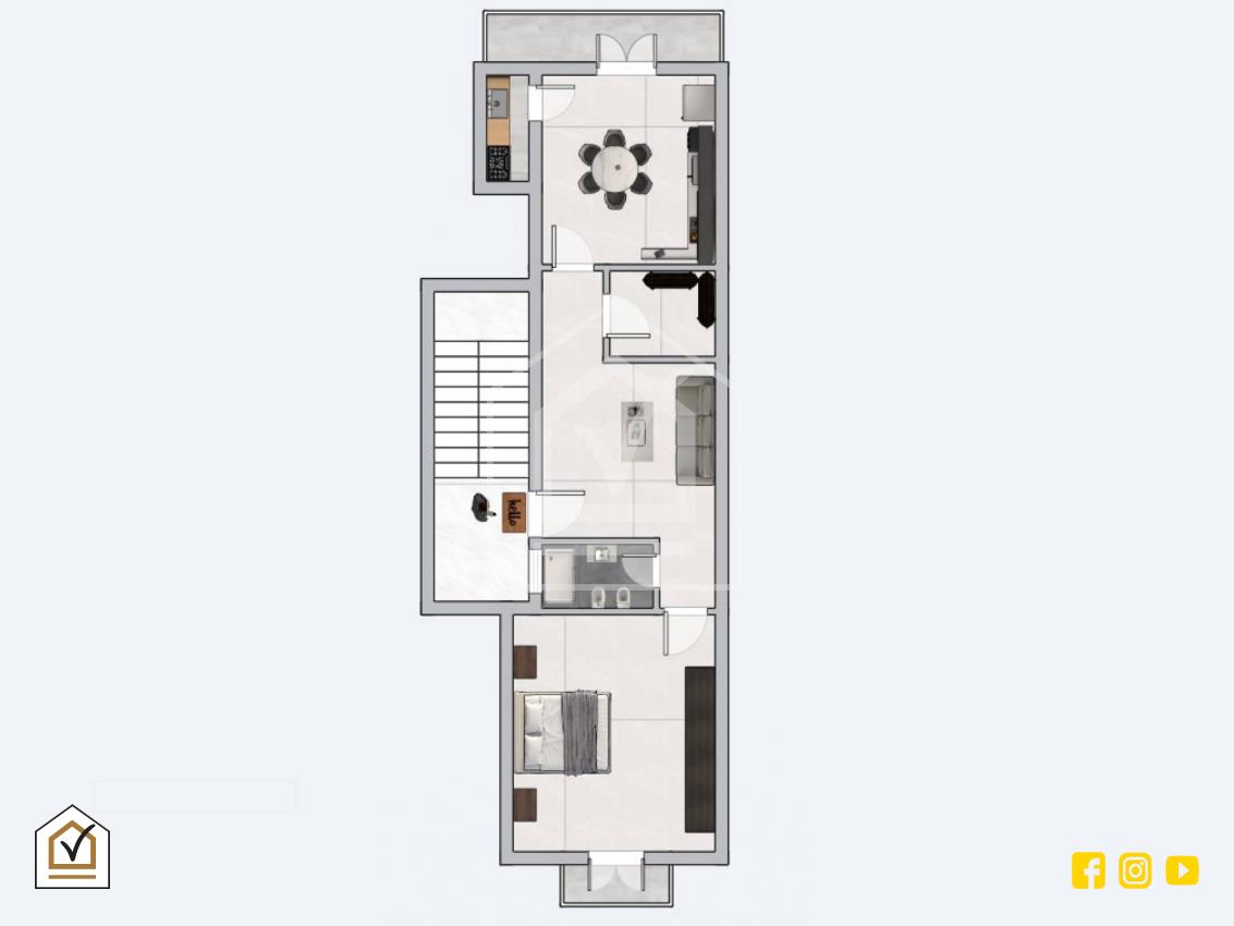 L’appartamento comprende una spaziosa camera matrimoniale, una seconda camera perfetta come studio o cameretta, un accogliente soggiorno e una cucina abitabile. Grazie alla sua distribuzione, l’immobile è adatto a diverse esigenze abitative.