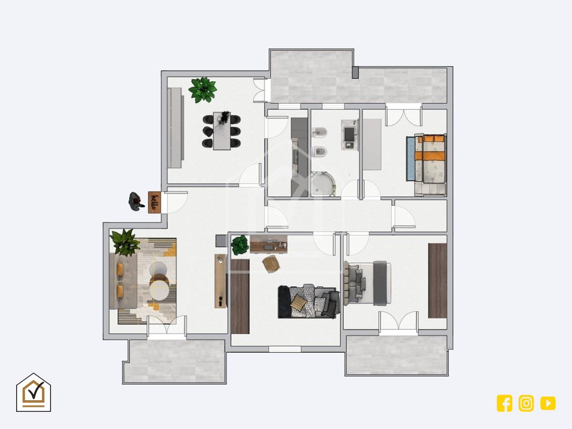Varcando la porta d'ingresso si è accolti dall'ampia e luminosa zona giorno dotata di accesso diretto al balcone; dal disimpegno si giunge alla zona notte composta da due camerette, camera matrimoniale e bagno. Completa di utile ripostiglio interno. Grazie alla sua pianta regolare è possibile, apportando delle semplici modifiche, ricreare un comodo open space e il doppio servizio, utile per tutte le famiglie numerose!