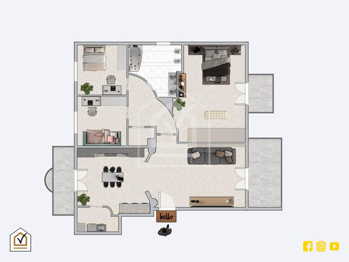 L'appartamento internamente riversa in ottimo stato ed è caratterizzato da un gusto moderno ed elegante; varcando la porta d'ingresso blindata si è subito accolti dall'open space. Quest'area è dotata di doppia esposizione con balconi che donano luminosità e ariosità all'ambiente. Dal disimpegno si giunge alla zona notte composta da due camere da letto, camera matrimoniale con cabina armadio e dal doppio servizio. Il bagno padronale gode di un'ampia metratura ed è caratterizzato dalla presenza della vasca da bagno idromassaggio jacuzzi! Ottimo per concedersi momenti di relax comodamente da casa.