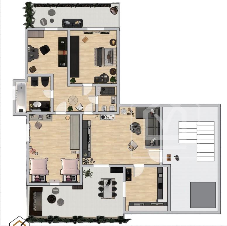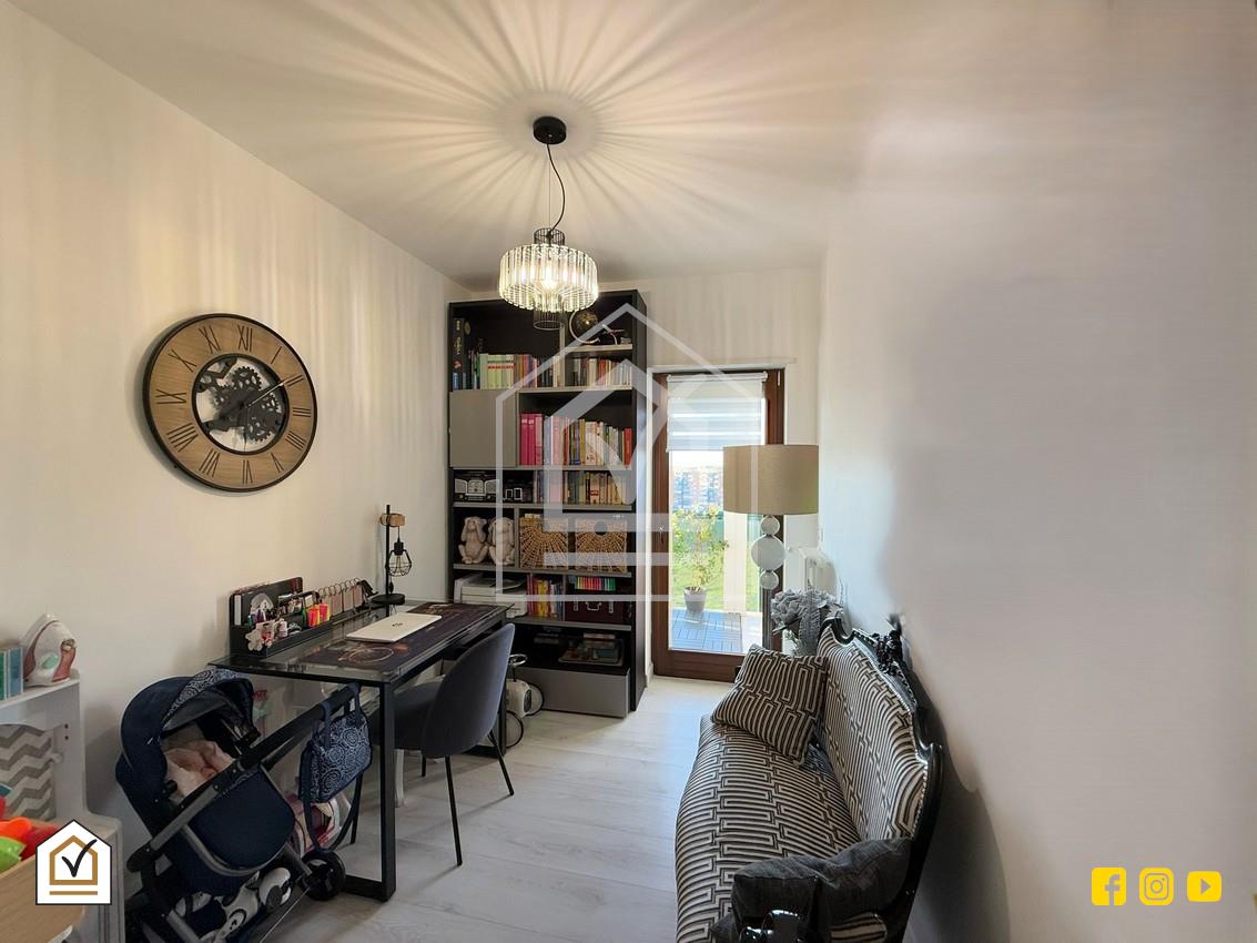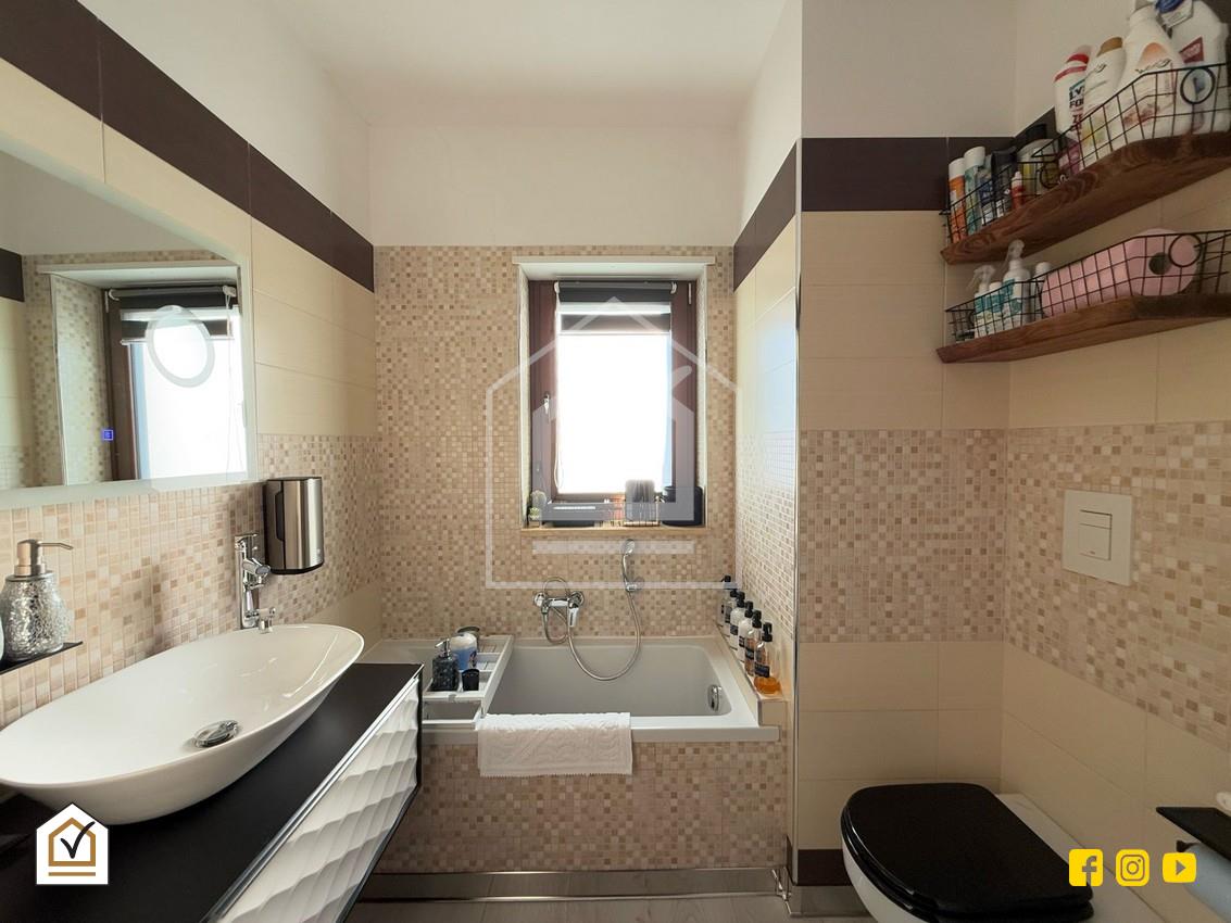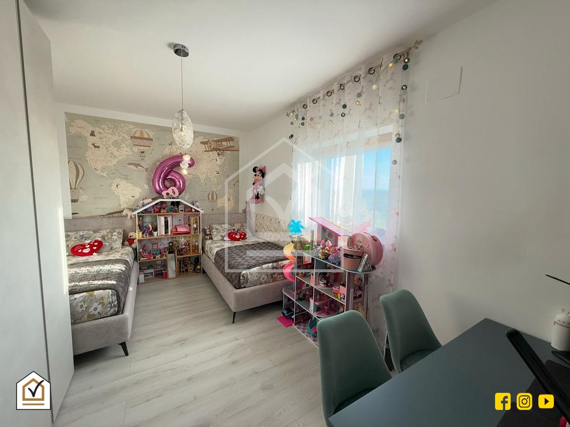 La zona notte è composta da due camere da letto spaziose, tutte dotate di finestre, che rendono gli ambienti ariosi e confortevoli. La terza stanza, attualmente adibita a studio, offre la massima versatilità d’uso, ideale per chi lavora da casa o desidera uno spazio personale. I due bagni – uno dei quali padronale – sono moderni e ben rifiniti, pensati per il massimo comfort quotidiano.
