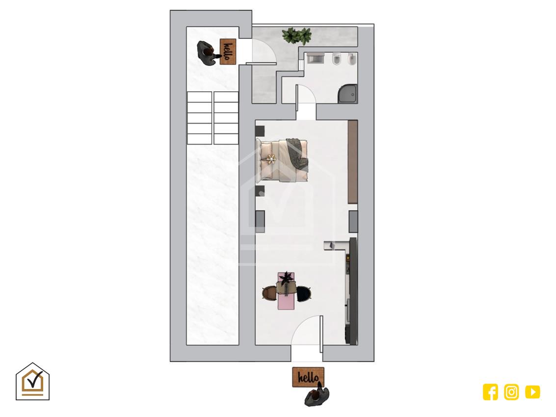 L’immobile è composto da: cucina abitabile, con possibilità di realizzare zona living open space, spaziosa camera da letto e bagno.
