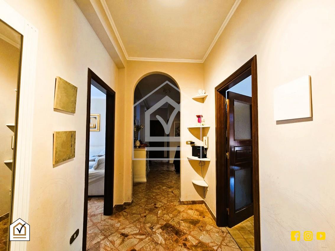 E' dotato di doppia esposizione, caratterizzato da luminosità e ariosità in tutte le ore del giorno, con ampi balconi. Varcando la porta d'ingresso si è accolti sulla destra dalla cucina e sulla sinistra dal salone. Il disimpegno conduce alla zona notte composta da due ampie camere da letto, doppio servizio e ripostiglio interno. Attualmente riversa in buono stato interno ma grazie alla sua pianta regolare è possibile, apportando delle modifiche, ricreare un moderno e funzionale open space!