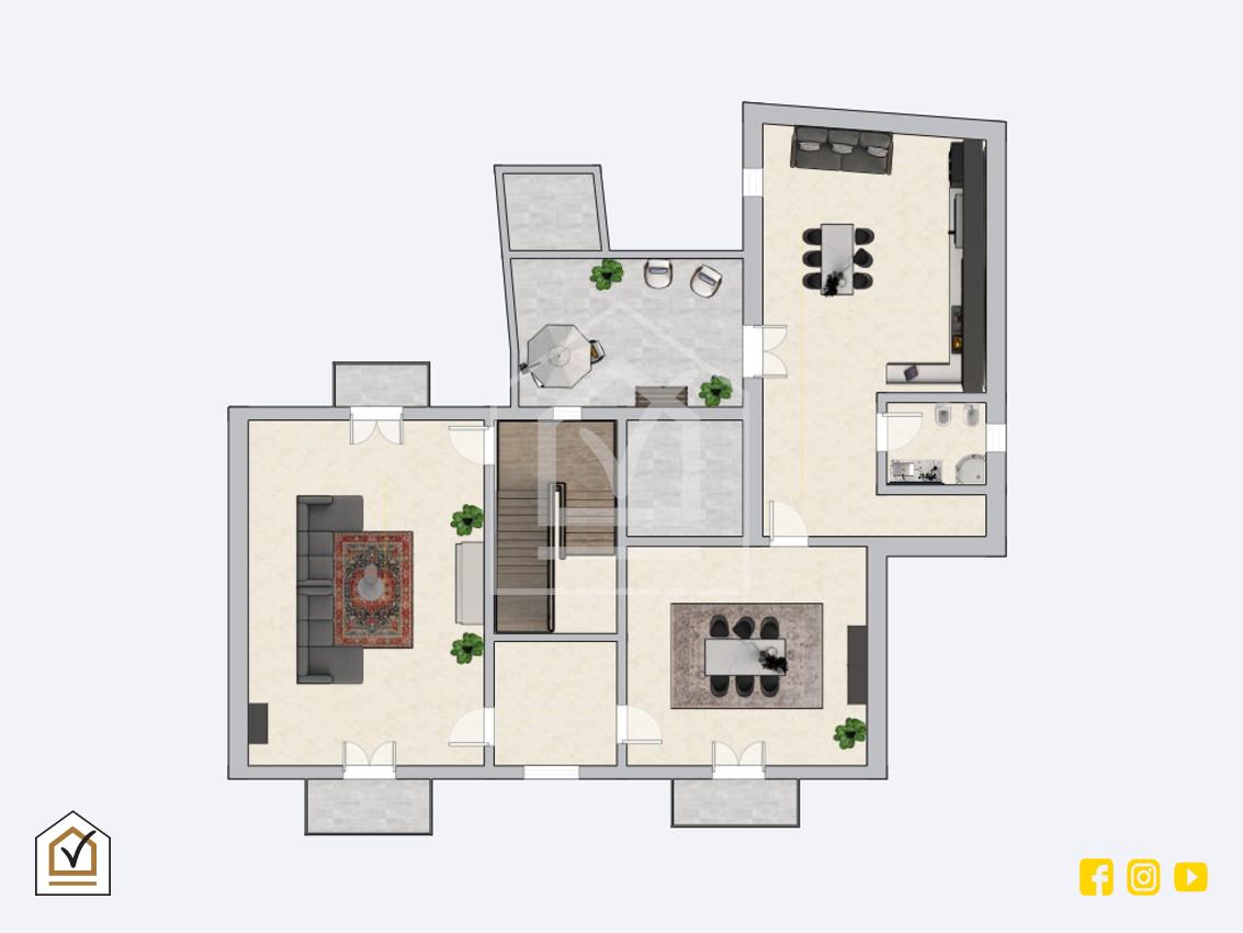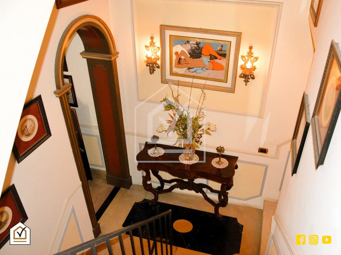Al secondo piano sorge la zona giorno composta dall'importante sala da pranzo caratterizzata anch'essa da una pavimentazione in marmo pregiato; nel recente 2024 sono stati sostituiti tutti i climatizzatori presenti in ogni camera. Proseguendo il disimpegno si giunge alla sala dotata di camino in muratura; spazio ideale per momenti di convivialità con amici e parenti ma anche ideali per concedersi momenti di relax. La cucina è di generose dimensioni ed è dotata di accesso diretto al terrazzino di pertinenza. Completa questo piano un bagno adiacente la cucina.