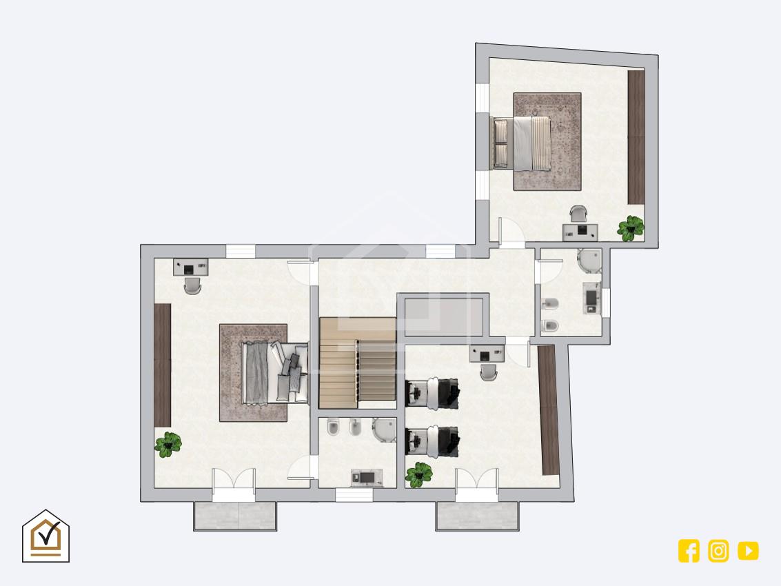 - Due bagni con sanitari a pavimento, lavabo e box doccia;