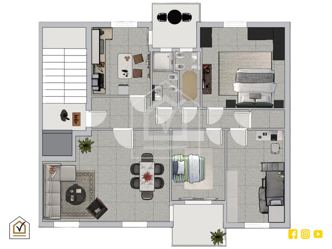 La zona notte offre tre camere da letto, tutte finestrate e ben distribuite, perfette per famiglie, coppie o professionisti che necessitano di spazi separati e funzionali. A completare il comfort della casa, troviamo due bagni entrambi finestrati, pensati per garantire privacy e praticità, oltre a un ripostiglio interno, perfetto per diventare una comoda cabina armadio.