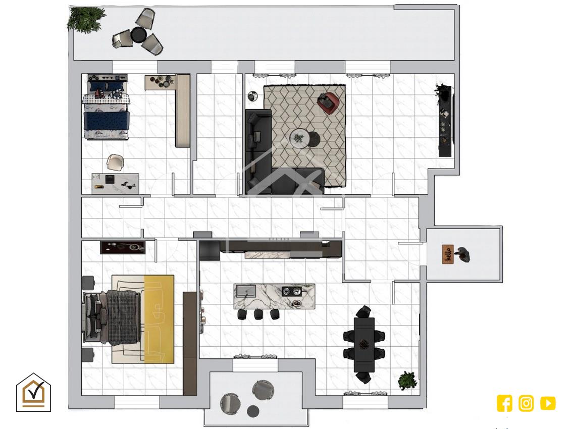 La proprietà si sviluppa in quattro vani ben distribuiti, pensati per garantire funzionalità e comfort abitativo. L'ingresso si apre su un salone doppio, ampio e accogliente, perfetto per condividere momenti di relax o convivialità con amici e familiari. Questo ambiente, particolarmente luminoso, si affaccia su un ampio balcone, ideale per godere di uno spazio esterno vivibile.