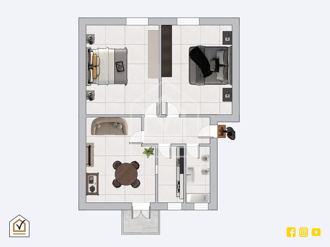 Varcato l'ingresso, verremo accolti dal corridoio che disimpegna tutto l'appartamento; sulla sinistra, la zona giorno è composta da luminoso salone dal quale si potrà accedere al comodo balcone, dalla cucina e dal bagno provvisto di vasca; sulla destra, invece, le due confortevoli ed ampie camere da letto completano la zona notte rendendo l'appartamento consigliatissimo per investimenti ed ottimale, per giovani coppie, vista la sua composizione, considerando sopratutto la sua posizione strategica dalla quale si potrà raggiungere facilmente il Policlinico e la Stazione Centrale.