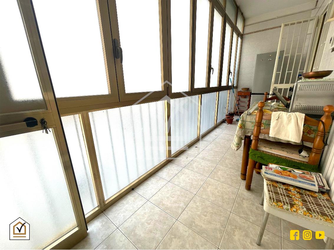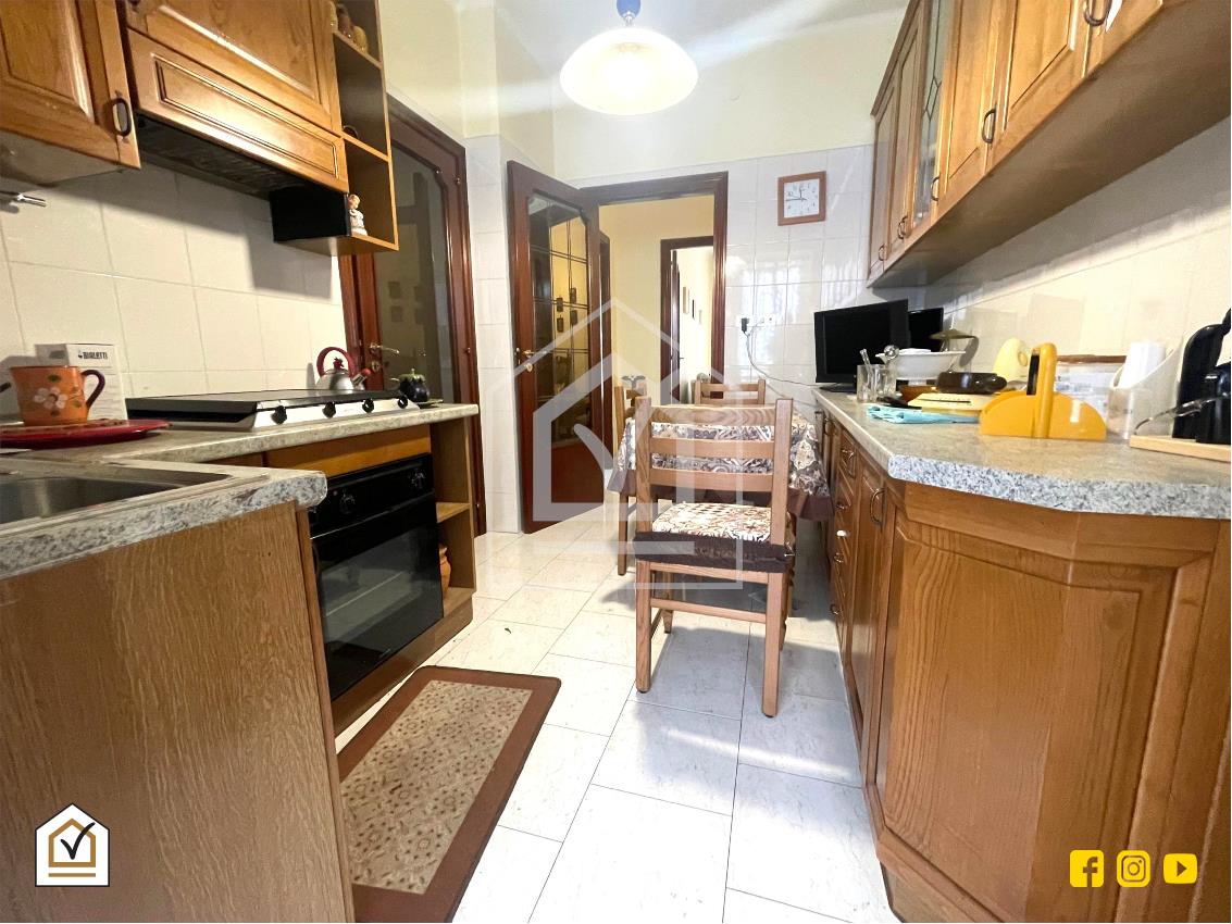 La zona giorno è composta da un ampio salone con affaccio sul spazioso balcone esterno e da una cucina abitabile collegata a un balcone verandato interno dove è presente anche un comodo ripostiglio. La zona notte invece comprende tre camere da letto ben dimensionate di cui due di esse affacciano sull’esterno con accesso al balcone, mentre la terza si affaccia sul balcone interno verandato, rendendola particolarmente silenziosa e riservata. Completano la proprietà un bagno finestrato e un secondo ripostiglio interno.
