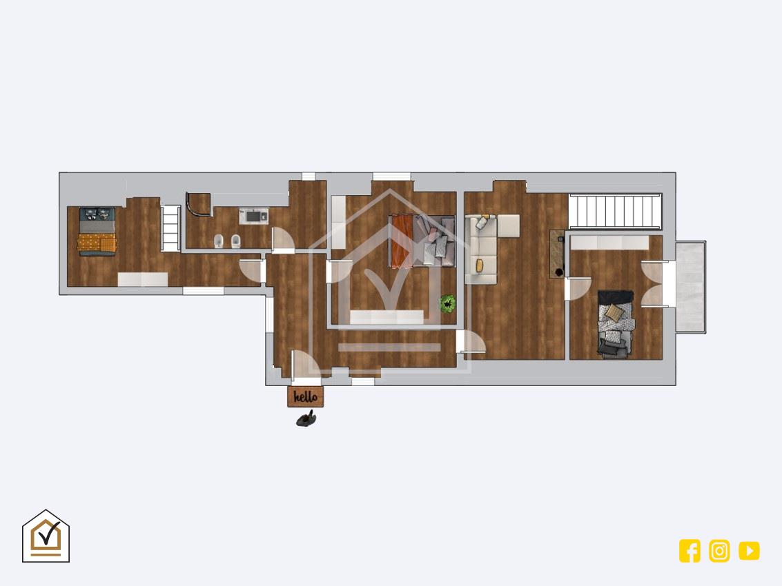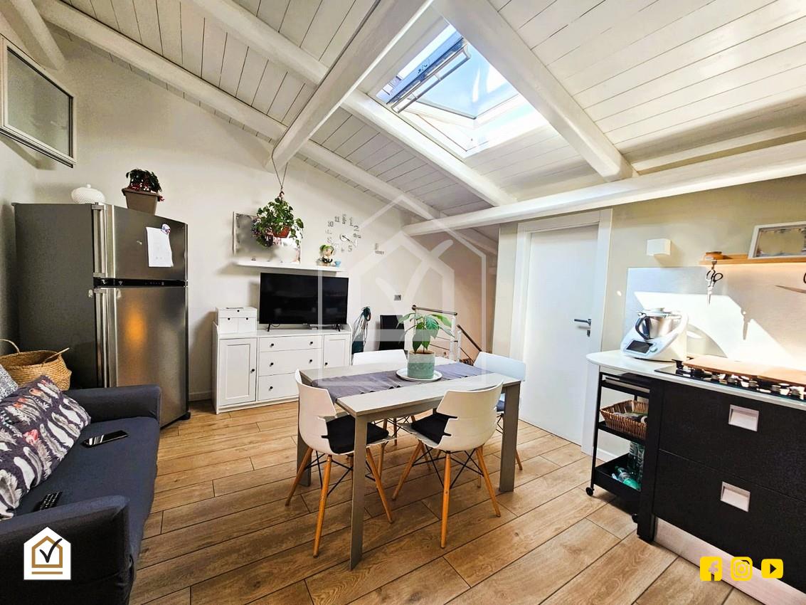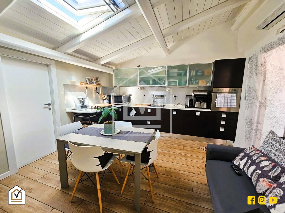 Varcando la porta d'ingresso blindata si è accolti dalla zona giorno con annessa cucina mansardata; dal disimpegno si giunge alla zona notte composta da due camere da letto e dal bagno. E' presente un comodo soppalco dove si sviluppa una terza camera da letto. L'intera area è caratterizzata dalla pavimentazione in parquet che dona luminosità e continuità e dal ribassamento con faretti.